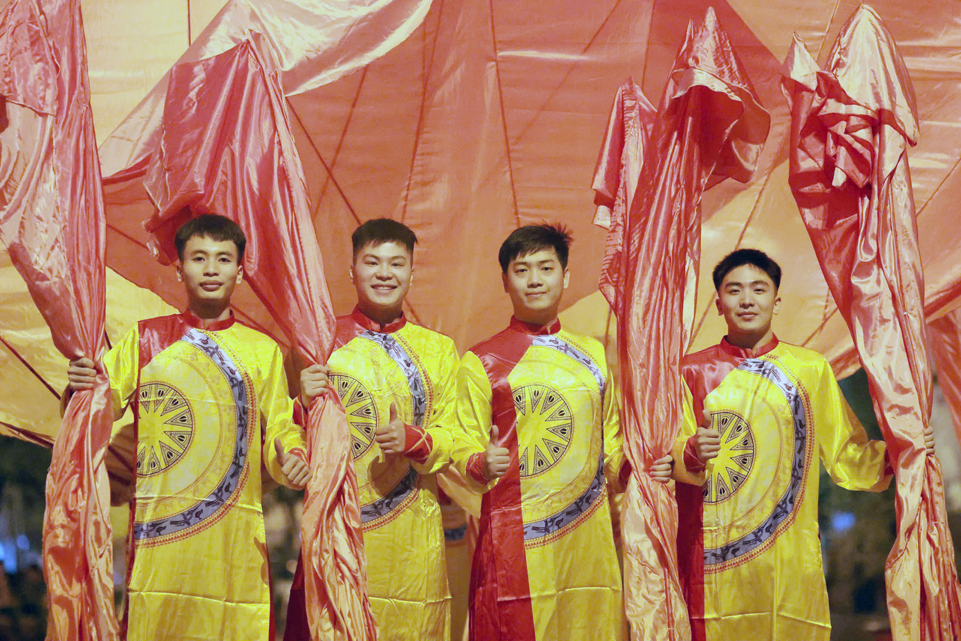 Âm thanh trống vang rền như lời hiệu triệu hào hùng, không chỉ đánh thức khí phách của thế hệ hôm nay mà còn tái hiện tinh thần chiến thắng của dân tộc Việt Nam 50 năm trước. Ngoài phần biểu diễn trống hoành tráng, tiết mục còn được kết hợp với nghệ thuật múa dân gian, các đội hình cờ xếp trật tự uy nghiêm, các màn múa lân sư rồng sinh động, giàu bản sắc truyền thống.
