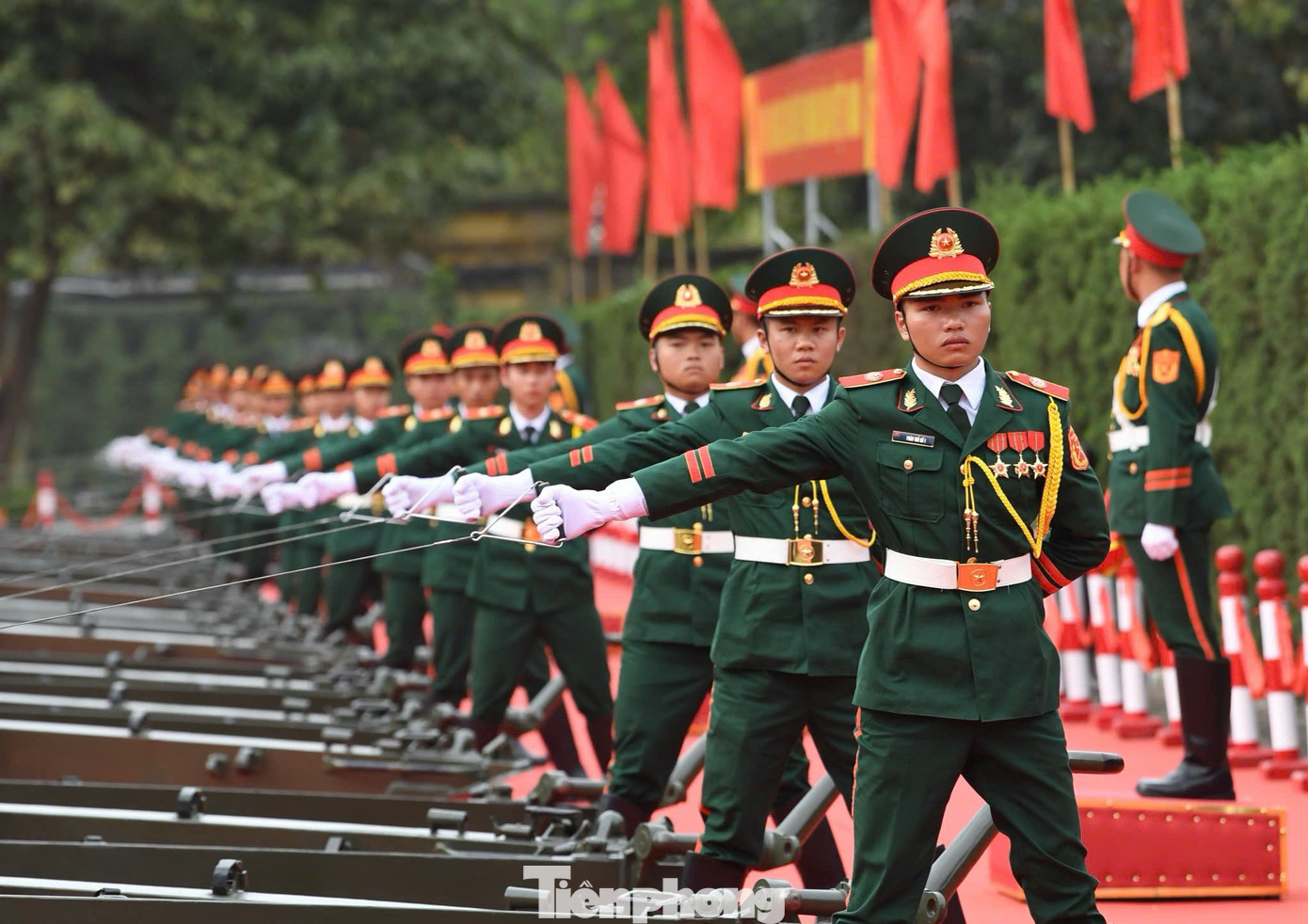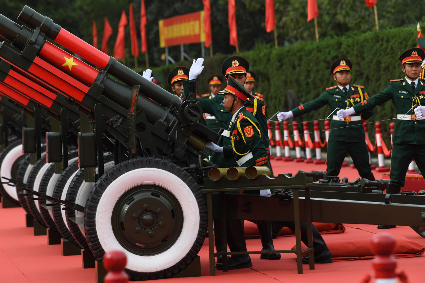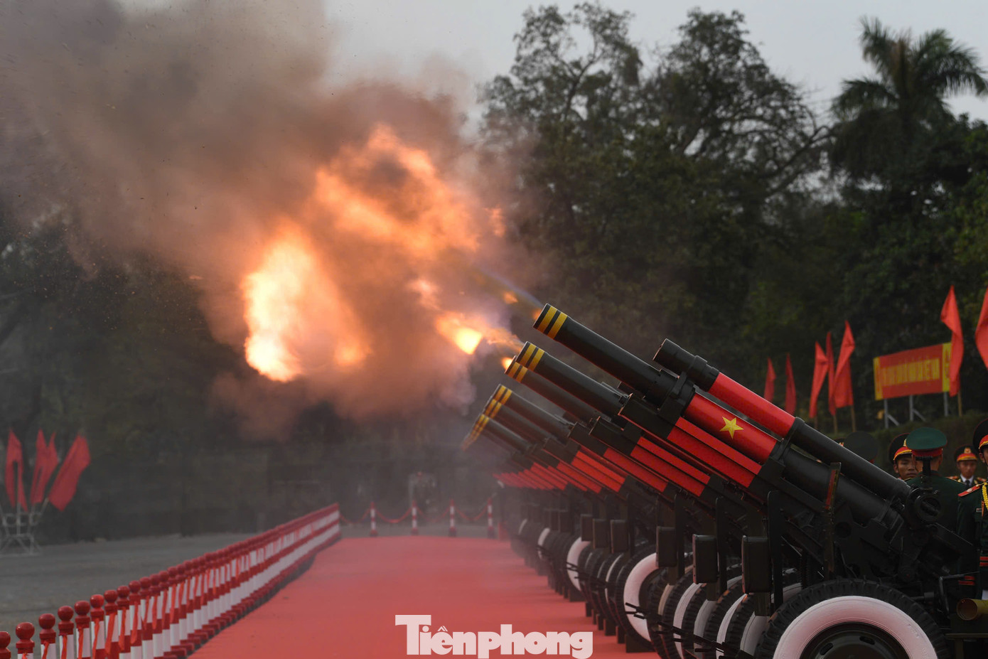 Đội pháo nghi lễ của Quân đội nhân dân Việt Nam tại khu vực Hoàng thành Thăng Long thực hiện nghi thức bắn 21 loạt đại bác chào mừng Tổng Bí thư, Chủ tịch nước Trung Quốc Tập Cận Bình, đúng vào lúc quốc thiều Việt Nam và Trung Quốc được cử hành tại Phủ Chủ tịch.