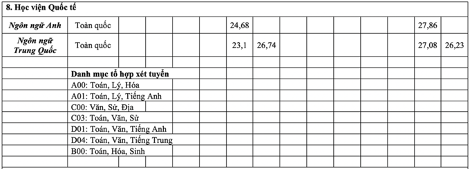Theo đó, điểm chuẩn áp dụng với phương thức xét kết quả thi tốt nghiệp THPT theo các tổ hợp A01, C00, C03 và D01 kết hợp với kết quả học tập THPT.