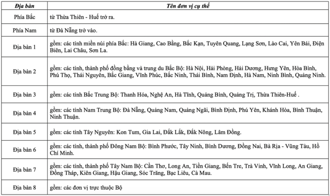 Danh mục địa bàn xét tuyển: