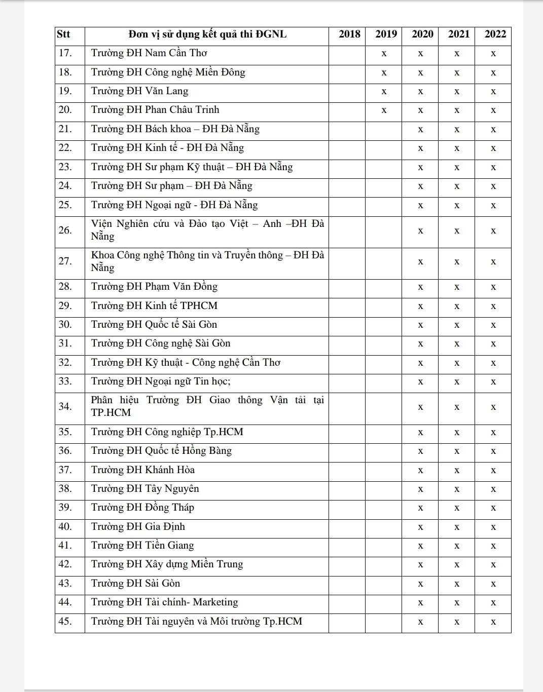 | Danh sách 81 trường ĐH, CĐ sử dụng kết quả thi ĐGNL năm 2022 để xét tuyển. |