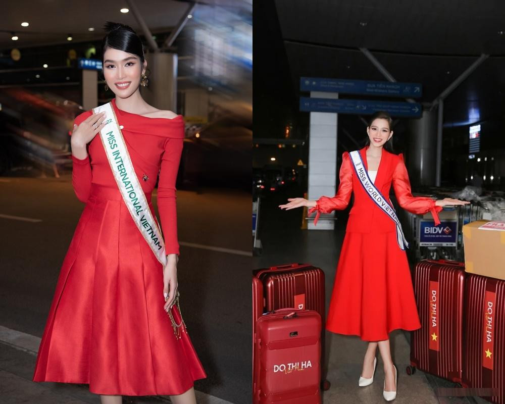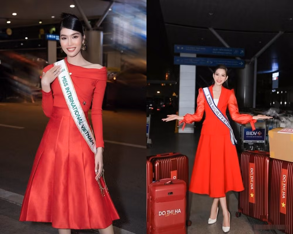 Xuất hiện ở dân bay, Phương Anh vô cùng cá tính khi lựa chọn cho mình bộ váy đỏ đầy nổi bật, như một cách thể hiện tinh thần quyết chiến tại đấu trường sắc đẹp sắp tới. Bộ váy đỏ rực rỡ của Phương Anh cũng khiến mọi người nhớ tới Hoa hậu Đỗ Thị Hà trong ngày bay đi tham gia Hoa hậu Thế giới 2021. Năm đó, Đỗ Thị Hà đã lọt vào Top 13 chung cuộc và biết đâu Phương Anh cũng đang muốn “xin vía” may mắn?
