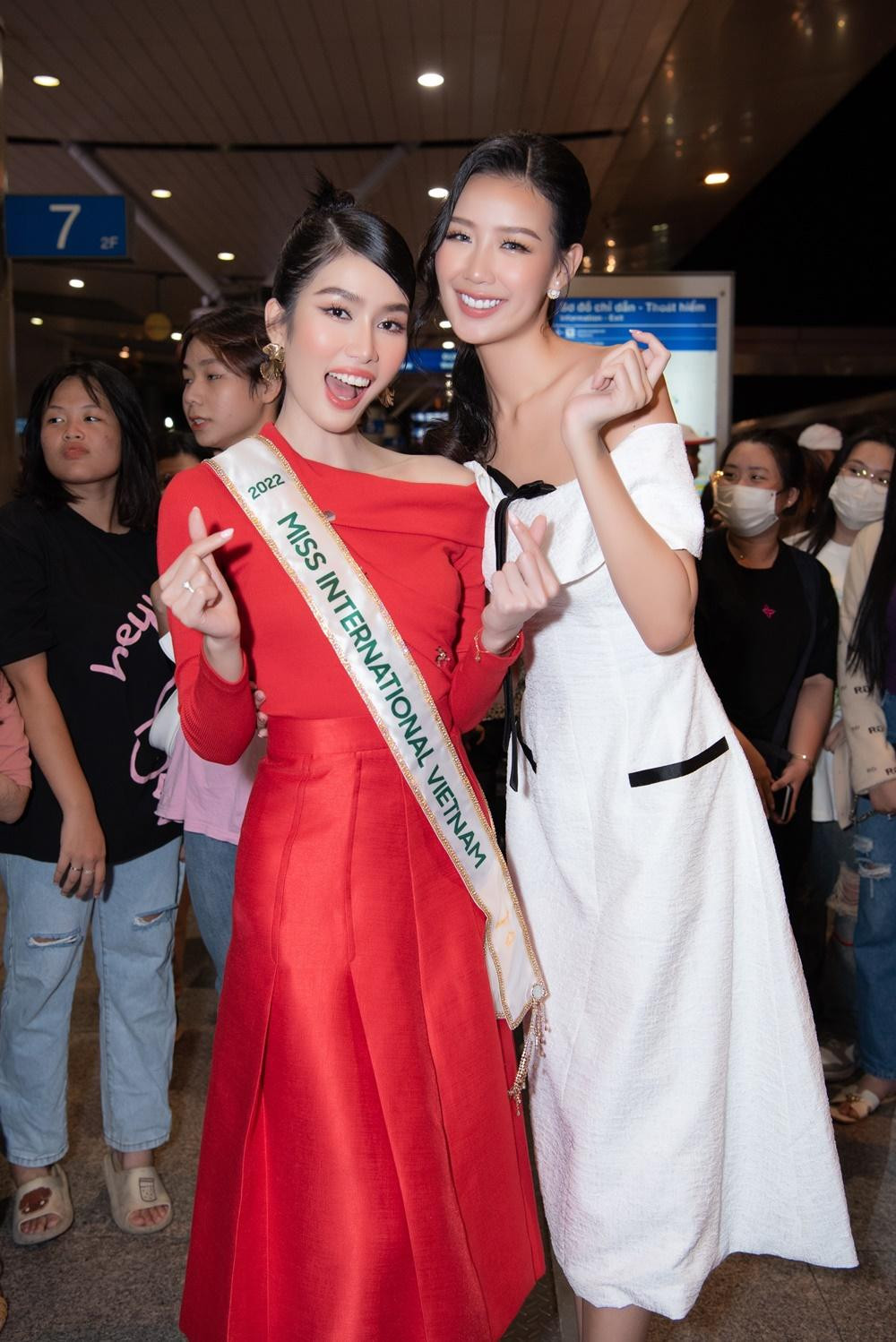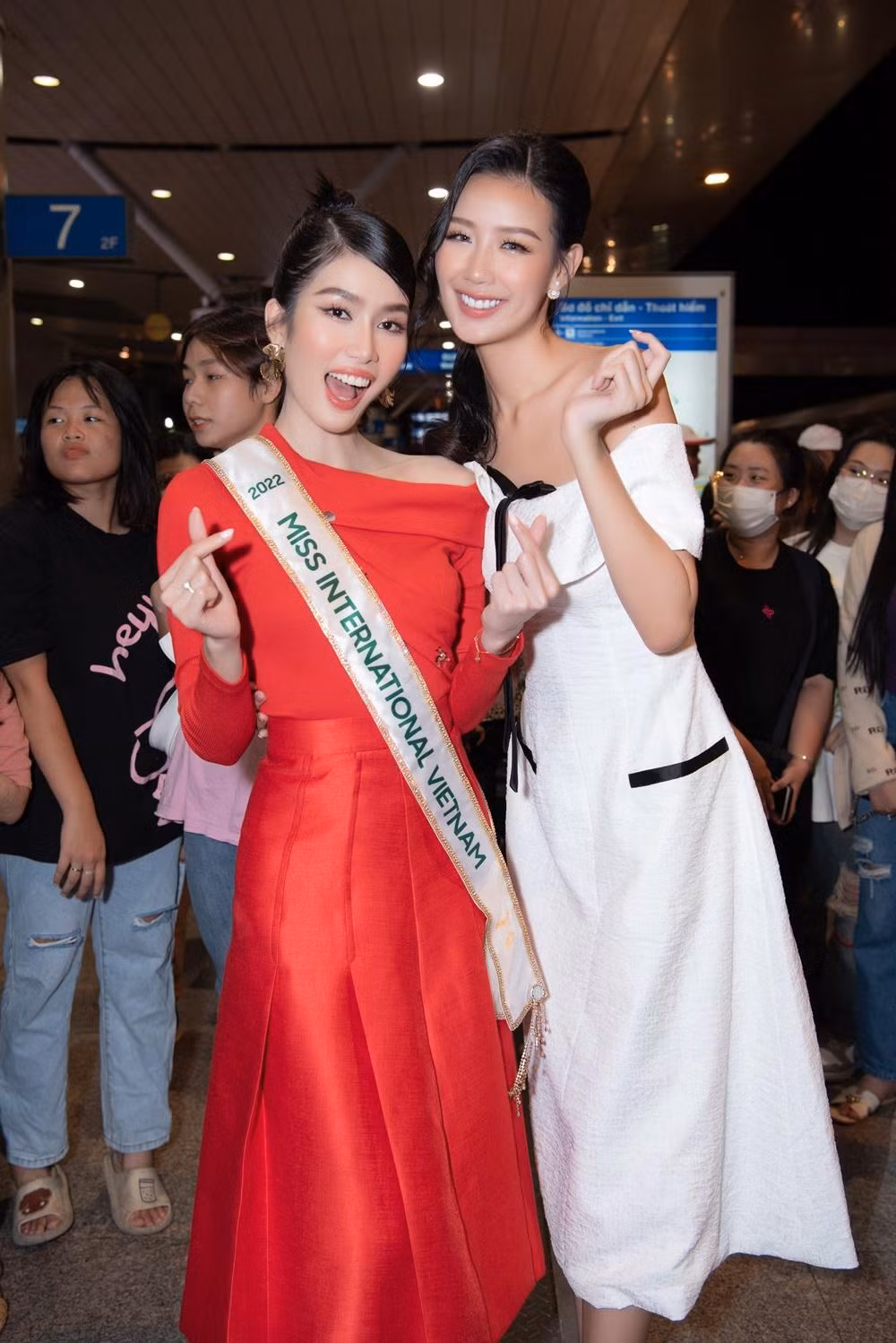 Chuyến đi của Phương Anh càng thêm đặc biệt khi được nhiều 'mỹ nhân' đình đám như Hoa hậu Bảo Ngọc, Hoa hậu Mai Phương, Á hậu Ngọc Thảo, Á hậu Phương Nhi... tới sân bay để tiễn hoặc gửi những lời chúc tốt đẹp cho cô. Rất nhiều 'nàng Hậu' vì lịch trình bận rộn như Đỗ Thị Hà, Thiên Ân cũng đã gửi những món quà đặc biệt chúc Phương Anh thành công.