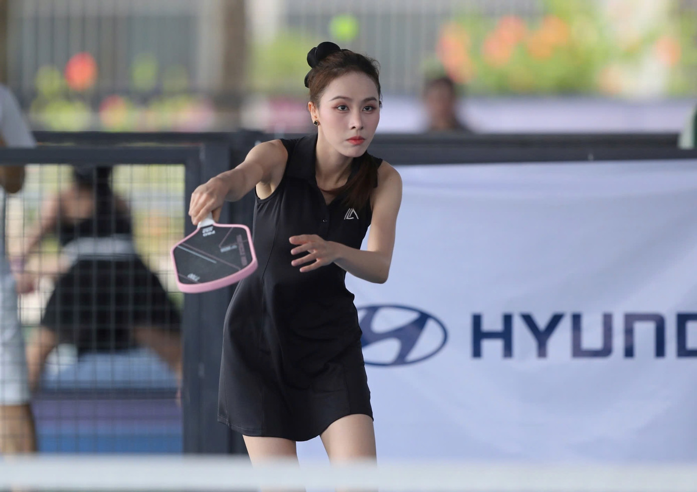 Sáng 6/7, các vận động viên, tay vợt tham gia thi đấu ngày thứ ba tại Giải Vô địch Pickleball Việt Nam - Cúp Hyundai Thành Công 2025. Sau trận đơn nữ không như mong muốn, Ngọc Hằng trở lại thi đấu hạng mục Đôi nữ không chuyên. Đồng hành cùng Á hậu Việt Nam là người đẹp Emma Lê.