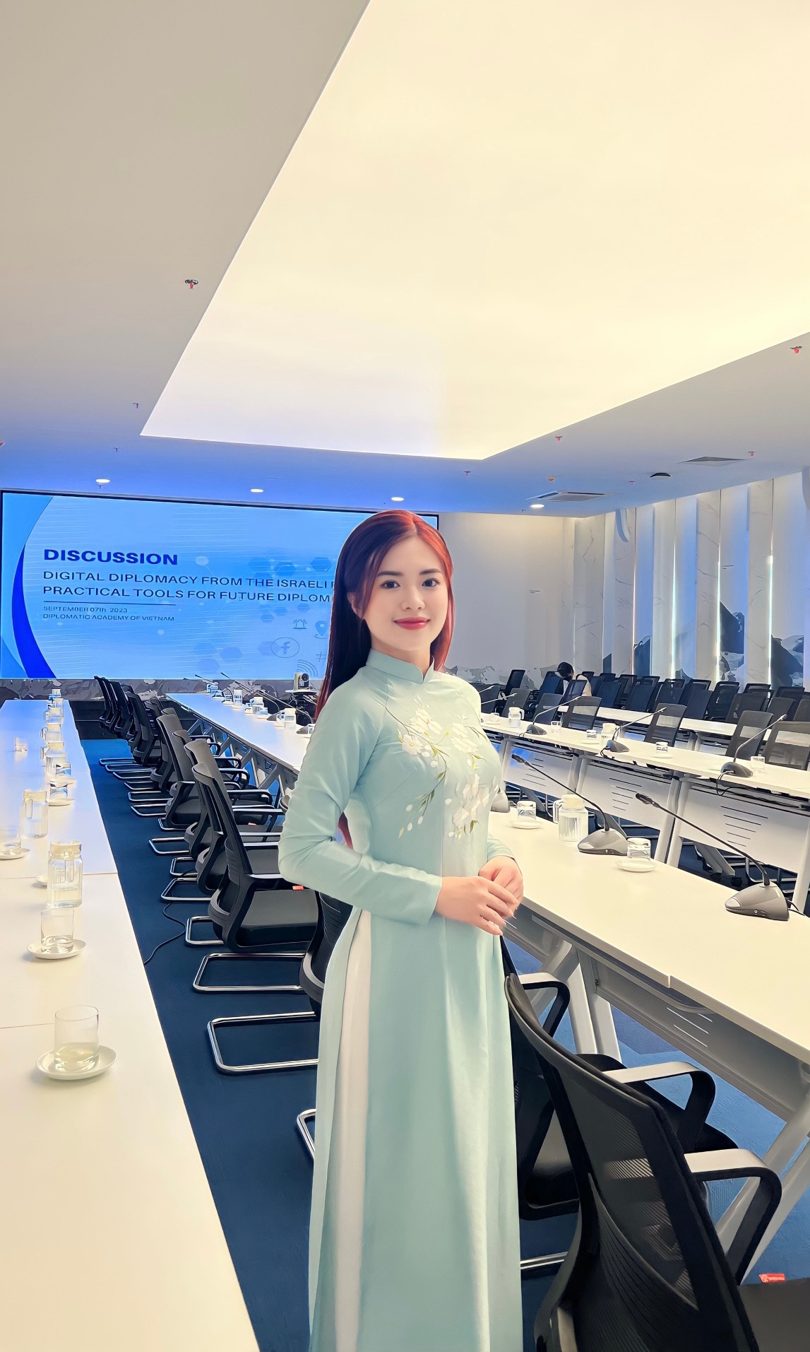 Việc mình đăng ký tham gia thi Miss DAV - Hoa khôi Ngoại giao 2023 là một quyết định khá bất ngờ, không có chủ đích trước. Mình đã điền đơn đăng ký tham gia vào ngày cuối cùng mở đơn nhưng mình tự tin rằng mình đã có một sự chuẩn bị khá kỹ lưỡng cho từng vòng thi. Thật bất ngờ và xúc động khi bản thân đã đoạt giải Á khôi cuộc thi năm nay.