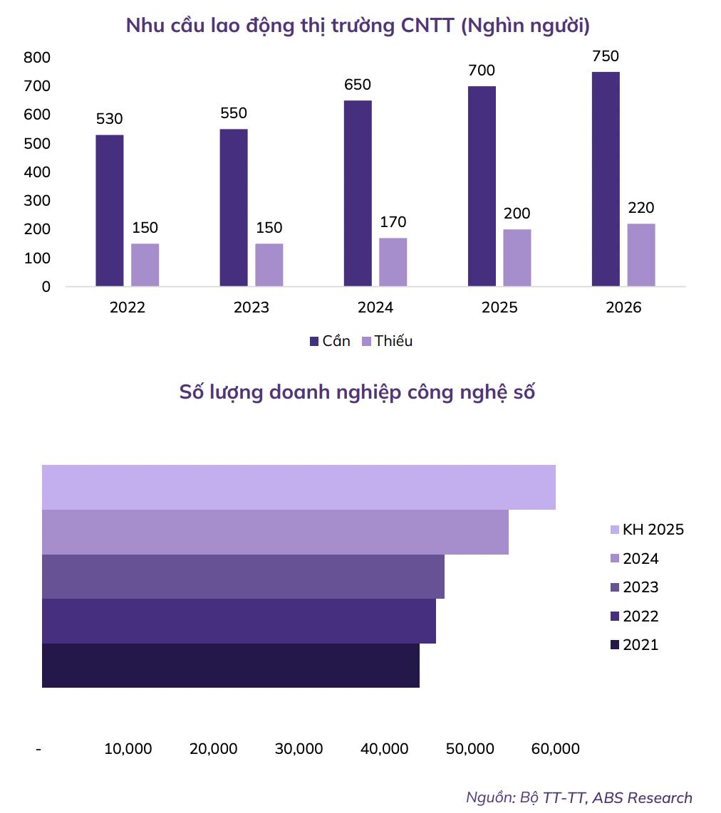 Tuy nhiên, ở Việt Nam, câu chuyện lại mang một sắc thái khác. Theo báo cáo của ABS phát hành đầu năm nay, với sự phát triển trong các lĩnh vực mới về trí tuệ nhân tạo (AI), bigdata, điện toán đám mây (Cloud) và an ninh mạng, Việt Nam cần bổ sung ít nhất 500 nghìn lao động công nghệ từ nay đến năm 2025.