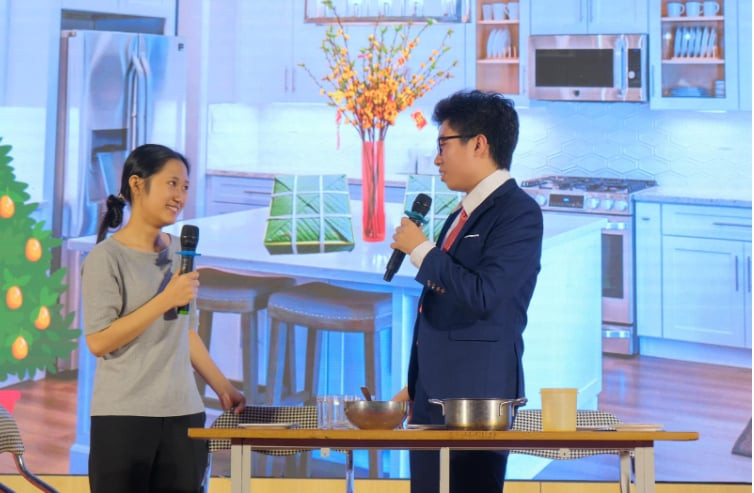 | Nghệ sĩ Nhân dân Lan Hương và nghệ sĩ Ưu tú Đỗ Kỷ trong "Đêm kịch Khoa Văn". |