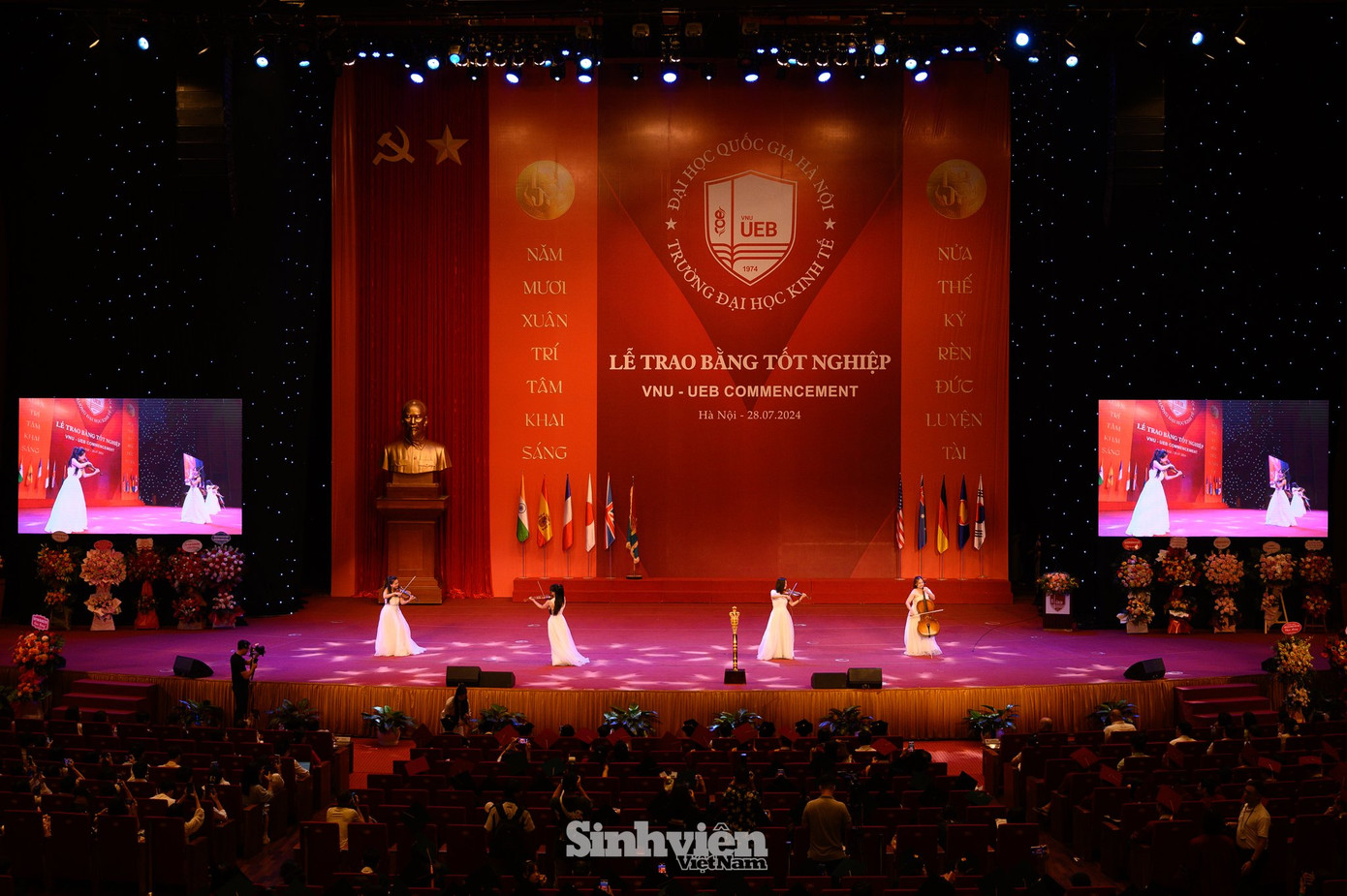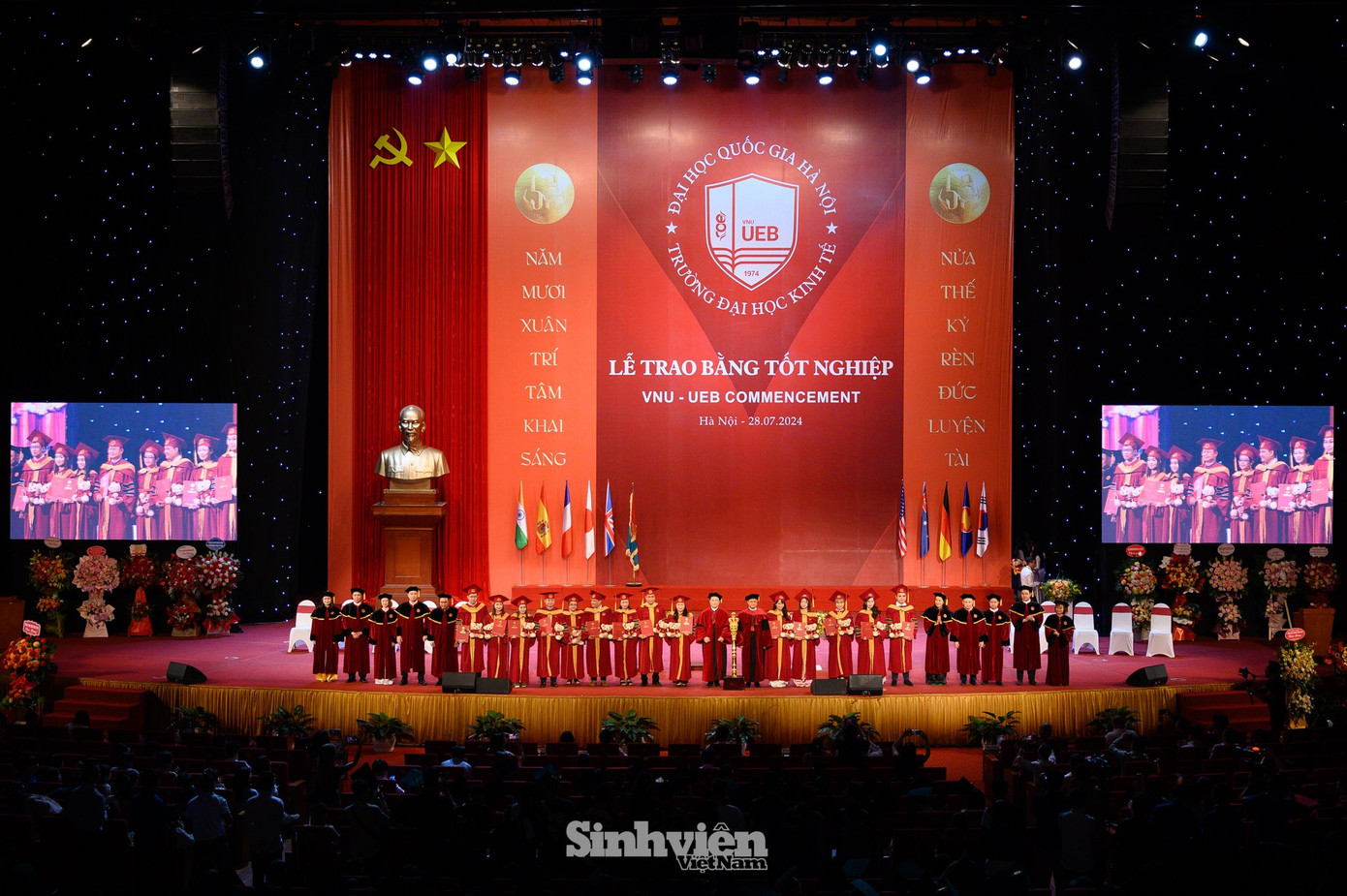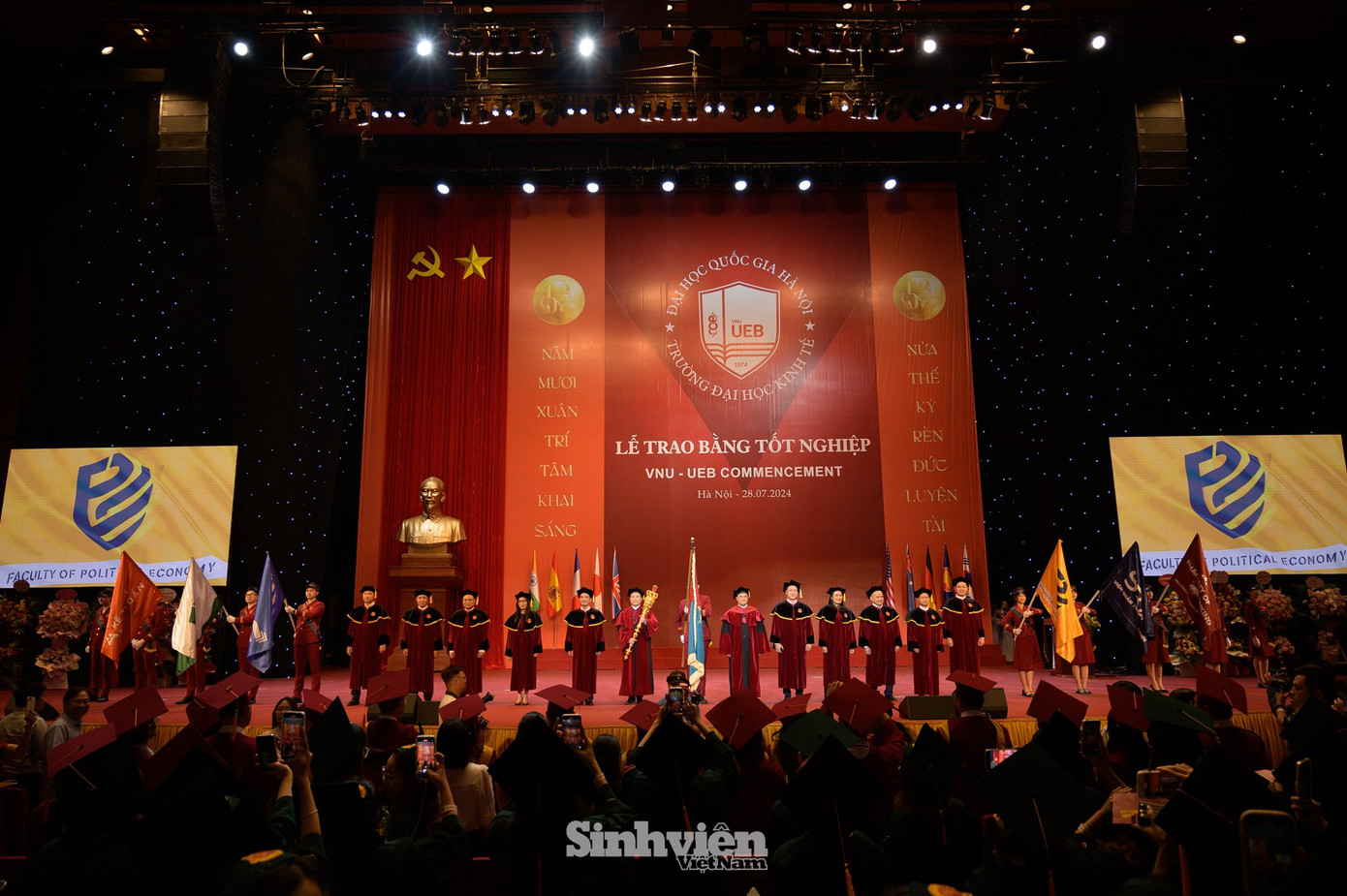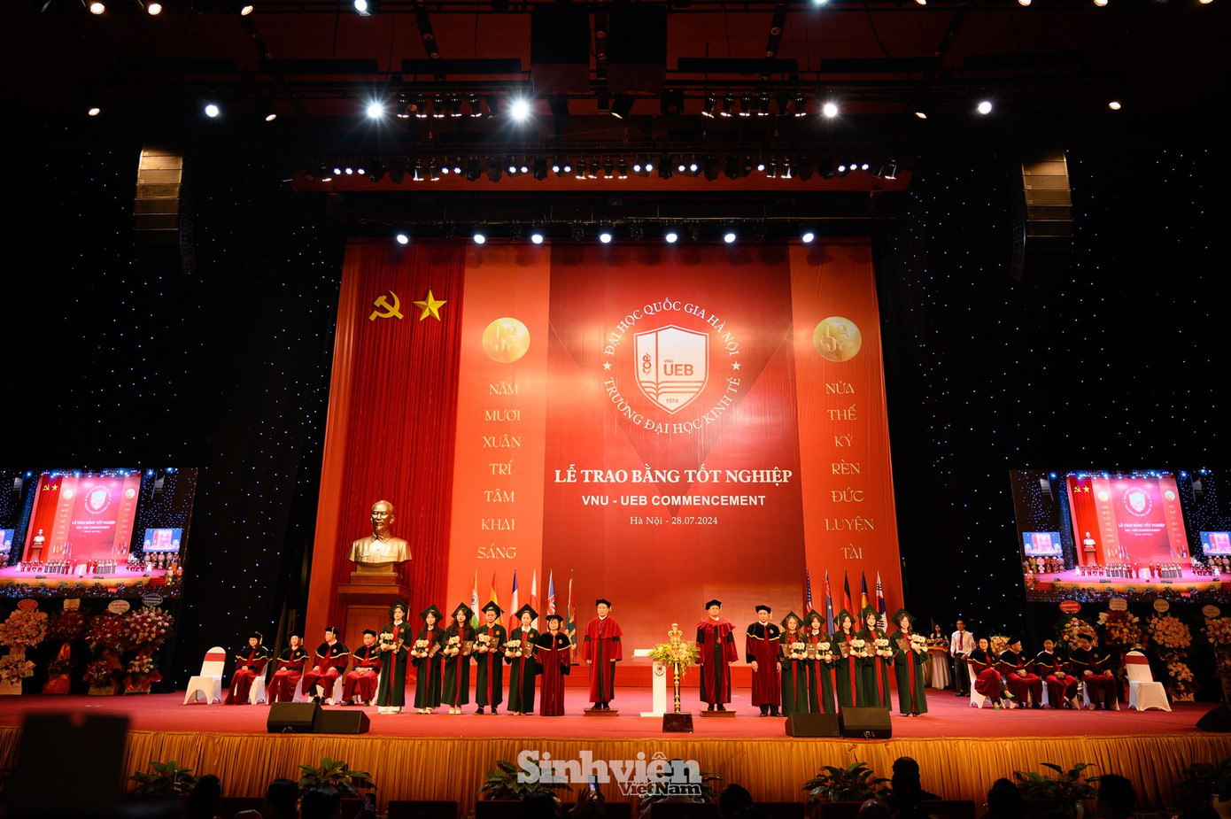 SVO - Chiều 28/7, tại Trung tâm Hội nghị quốc gia, Trường Đại học Kinh tế - ĐHQGHN (UEB) tổ chức lễ trao bằng tốt nghiệp cho hơn 1.000 sinh viên, học viên, nghiên cứu sinh tốt nghiệp tháng 7 năm 2024, trong đó có 112 sinh viên tốt nghiệp loại xuất sắc.