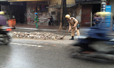Nhận được tin báo, CA phường Cát Linh cũng cử các chiến sĩ CA phường và lực lượng tự quản ra hiện trường góp sức. Sau khoảng 15 phút, đống phế thải xây dựng đã được lực lượng CSGT Đội 2 dọn dẹp gọn gàng vào vỉa hè, bàn giao cho CA phường sở tại tiếp tục giải quyết. Nhờ nỗ lực này mà vào giờ cao điểm sáng nay, đoạn đường này không xảy ra ách tắc.