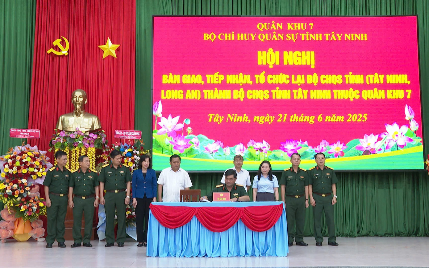 Cùng ngày, tại tỉnh Long An, Bộ Chỉ huy Quân sự (CHQS) tỉnh Tây Ninh (mới) tổ chức hội nghị bàn giao, tiếp nhận và công bố quyết định tổ chức lại Bộ CHQS tỉnh Tây Ninh trên cơ sở hợp nhất từ hai Bộ CHQS tỉnh Tây Ninh và Long An.