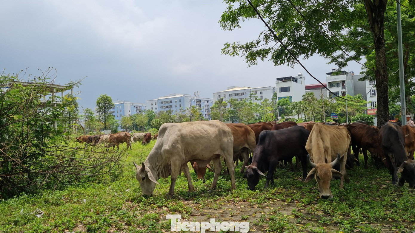 | Trâu bò thong dong gặm cỏ trong khu đô thị Thanh Hà Cienco5. |