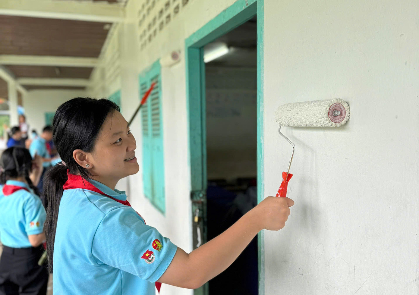 | Thiếu niên hai nước tham gia hoạt sơn tường lớp học. Ảnh: BTC |