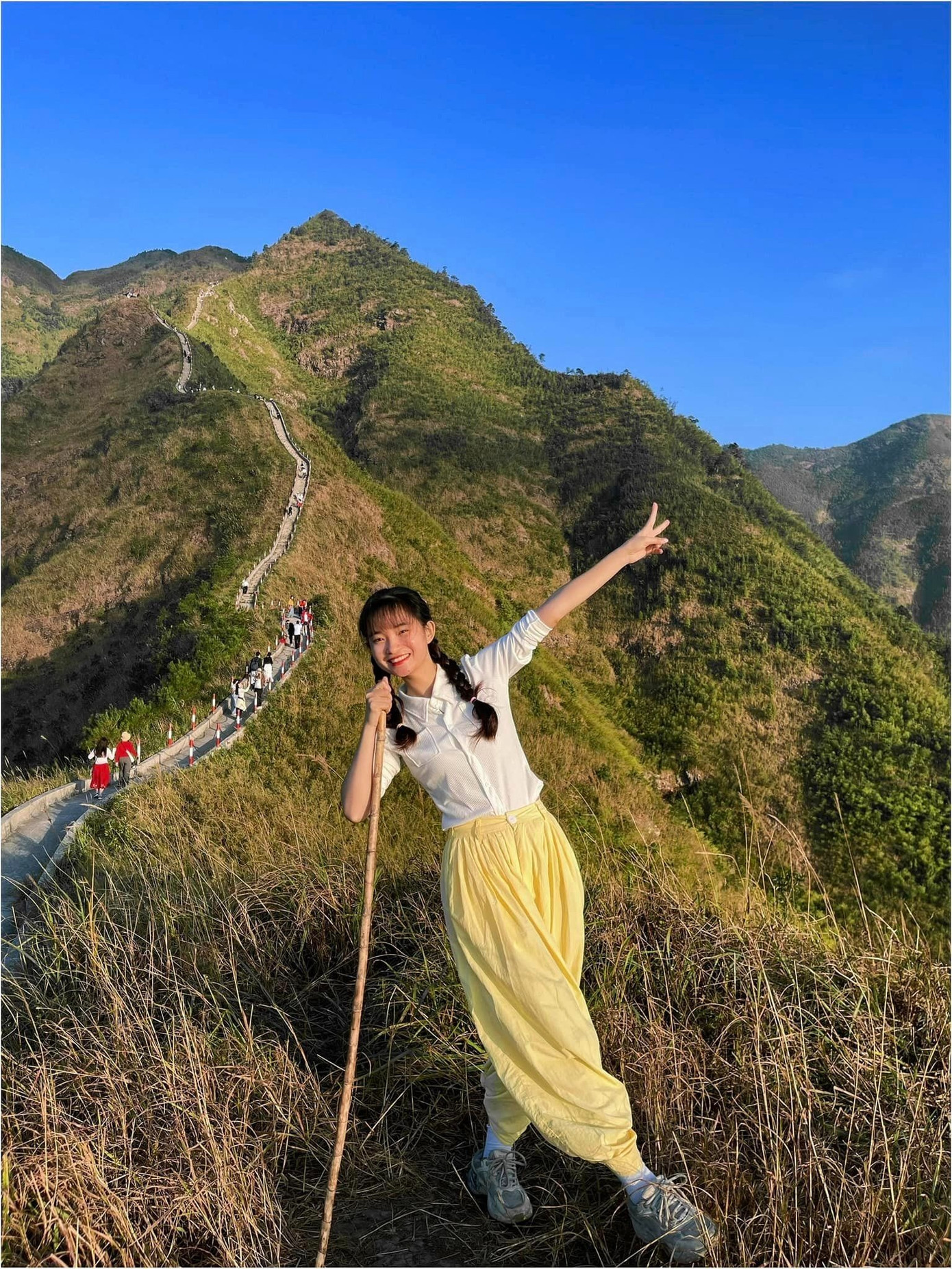 Xuất phát từ 8h sáng 2/11, Kiều Dung (sinh năm 2001) cùng nhóm bạn đi xe máy vượt quãng đường 215 km từ Bắc Ninh đến huyện Bình Liêu (Quảng Ninh) để chinh phục cột mốc 1305 (Sống Lưng Khủng Long) và cột mốc 1297 (thuộc địa phận tỉnh Lạng Sơn, giáp ranh huyện Bình Liêu). Đây là những địa điểm check-in "hot" thời gian vừa qua khi cỏ lau vào mùa nở rộ.
