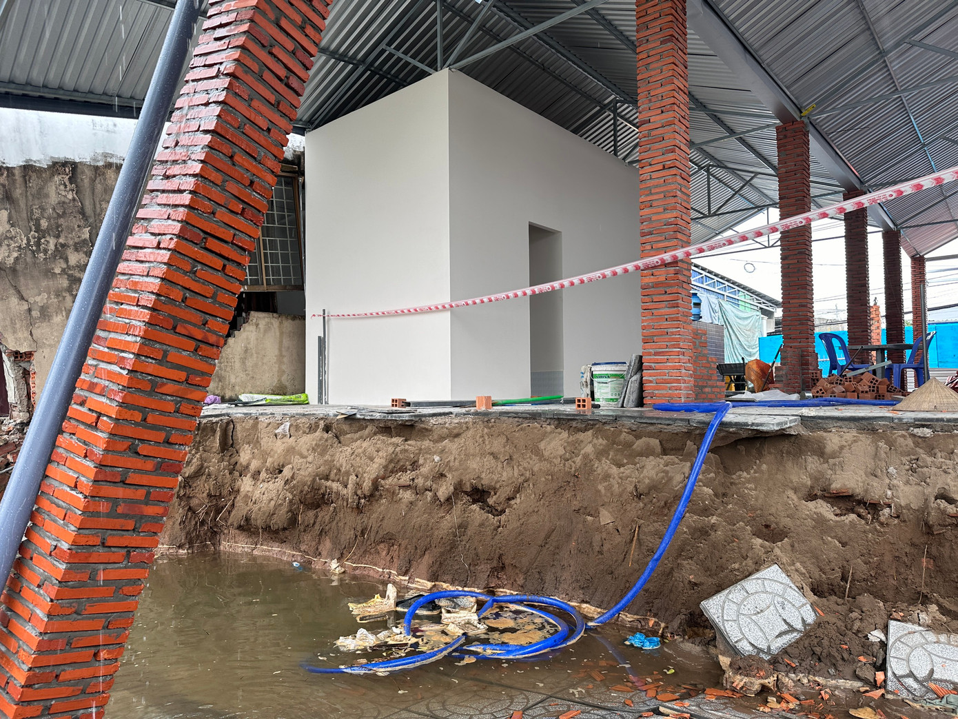 Vị trí sạt lở dài trên 70m, rộng trung bình khoảng 8m, làm ảnh hưởng 10 căn nhà (hư hỏng phần sau nhà, rạn nứt tường, nền nhà) của 6 hộ dân, phải di dời khẩn cấp để đảm bảo an toàn.