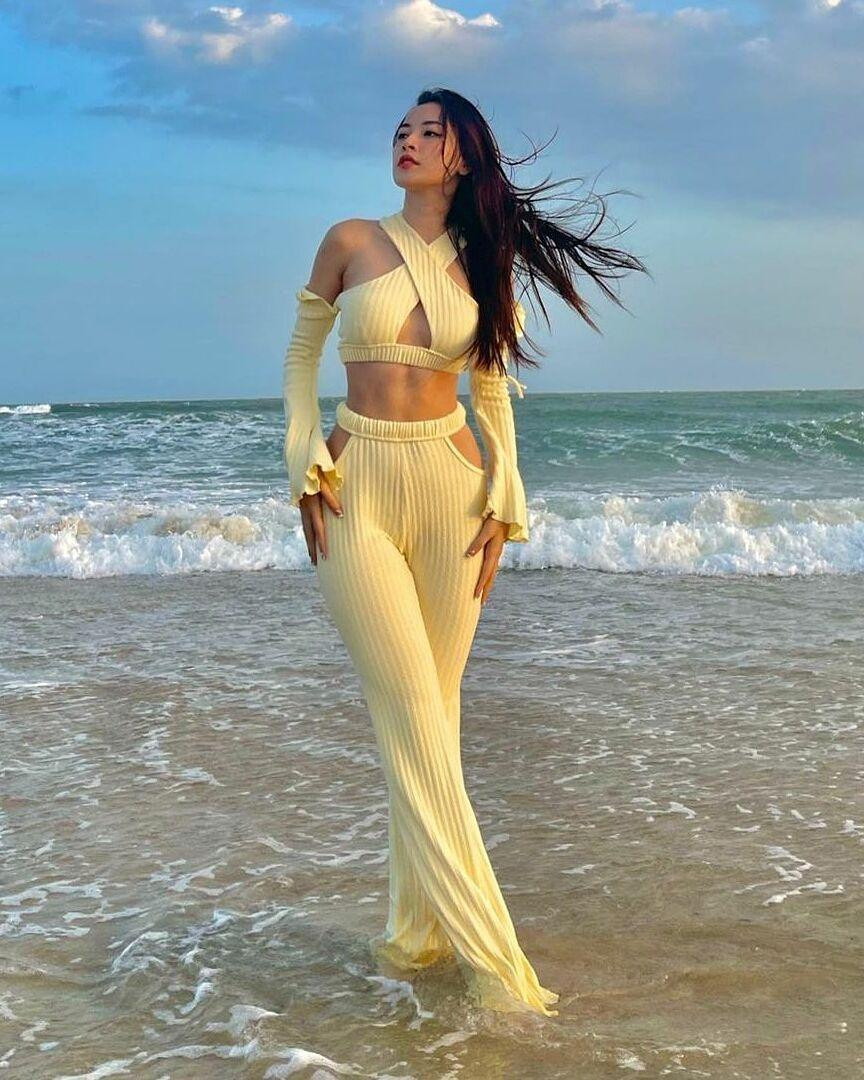 Trong khi đó, Quỳnh Anh Shyn lại chọn một thiết kế cắt khoét táo bạo hở phần lớn vòng hông. Quỳnh Anh Shyn ngày càng ăn mặc hở bạo hơn trước, liên tục gây choáng với những set đồ ôm sát đầy gợi cảm.