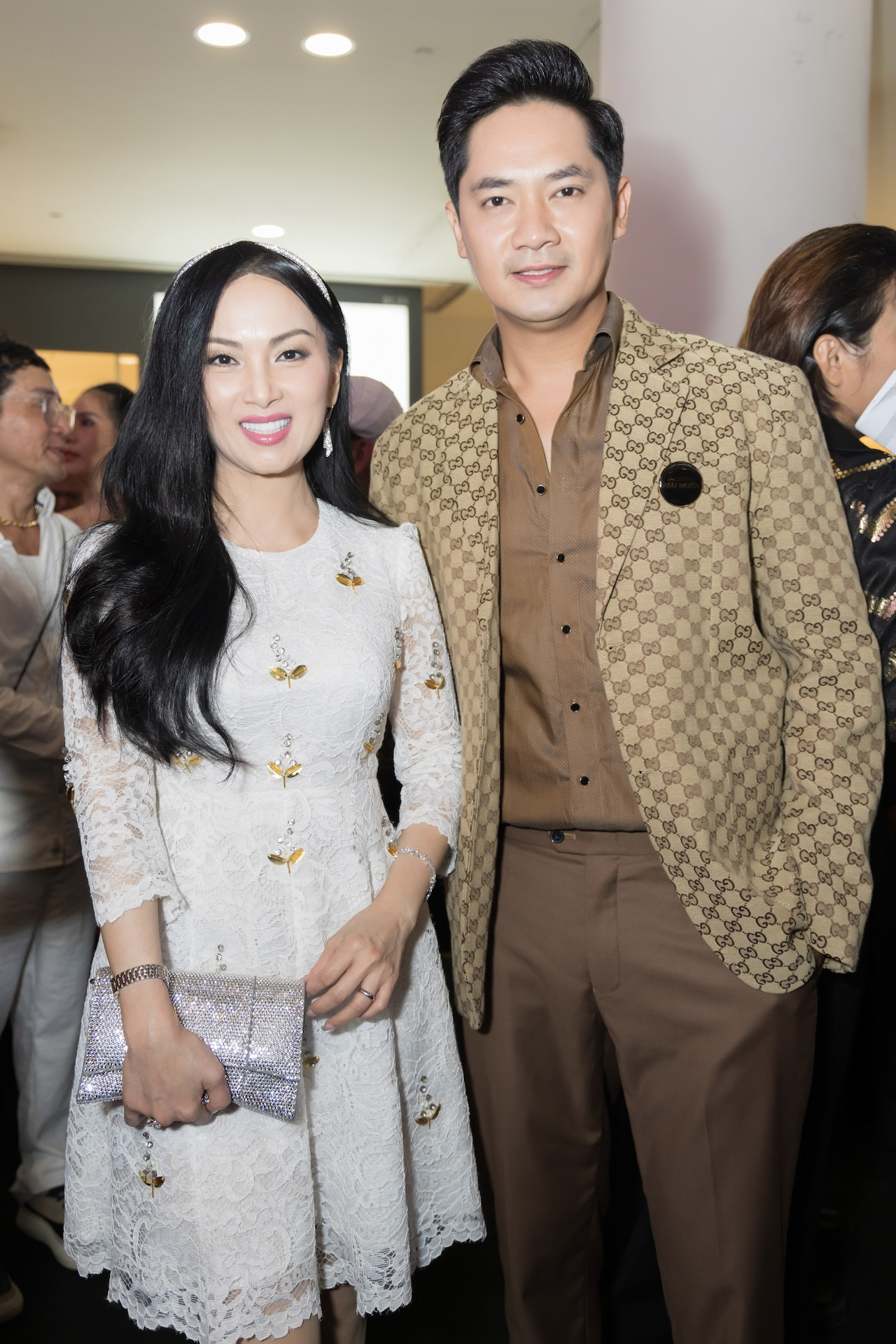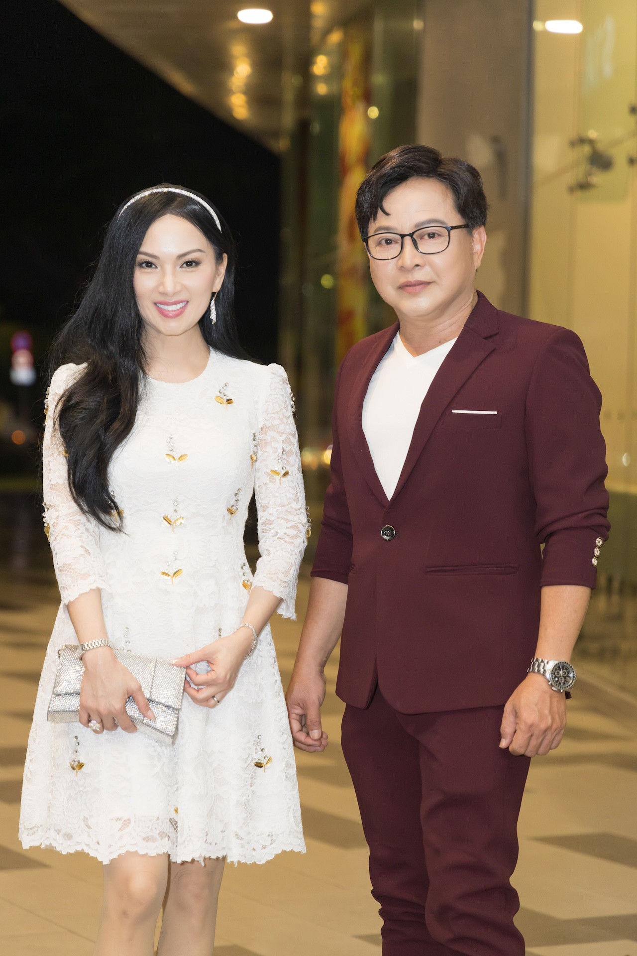 Xuất hiện chúc mừng MC Quyền Linh trở lại màn ảnh với phim Hai Muối, ‘ca sĩ tỷ phú' Hà Phương đã gây chú ý khi diện cây hàng hiệu với phụ kiện kim cương sáng chói một vùng sánh bước cùng ‘người tình sân khấu' Trần Sang. Bên cạnh đó, giọng ca Hoa cau vườn trầu thu hút ống kính với nhan sắc xinh đẹp mặn mà cùng vóc dáng thon gọn dù đã là mẹ của hai cô công chúa xinh đẹp.