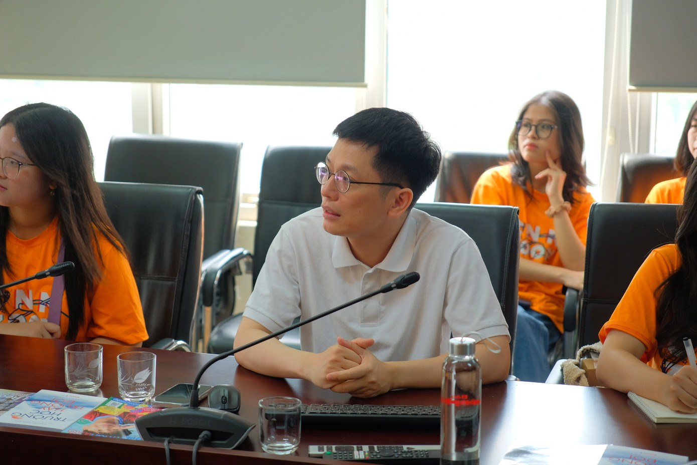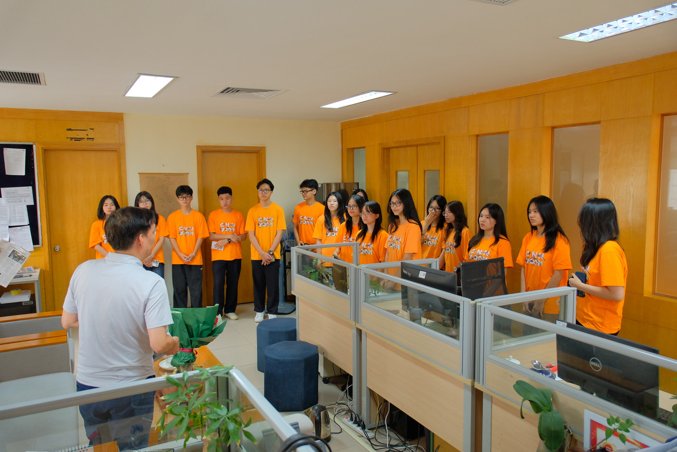 Tiếp đón giáo viên và học sinh của trường THPT chuyên Ngoại ngữ có Nhà báo Nguyễn Tuấn Anh - Trưởng ban Sinh Viên - Hoa Học Trò; Nhà báo Nguyễn Hồ Hưng - Phó Trưởng ban thường trực và nhà báo Bùi Lan Phương - Phó ban.