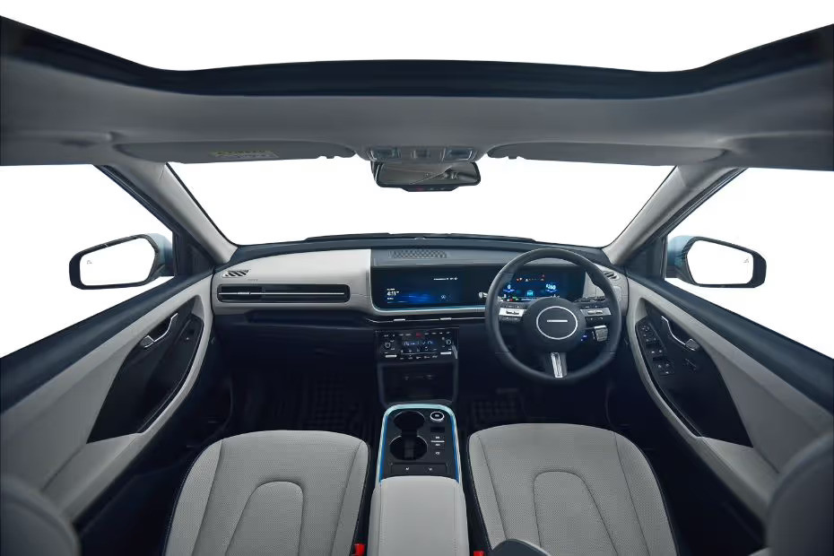 Bên trong, Hyundai Creta Electric được trang bị hai màn hình 10,25 inch, vô lăng 3 chấu mới và cần số dạng núm xoay gắn trên cột lái. Bệ tỳ tay trung tâm được thiết kế lại, tích hợp núm xoay chọn chế độ lái, phanh tay điện tử và hai khay đựng cốc.