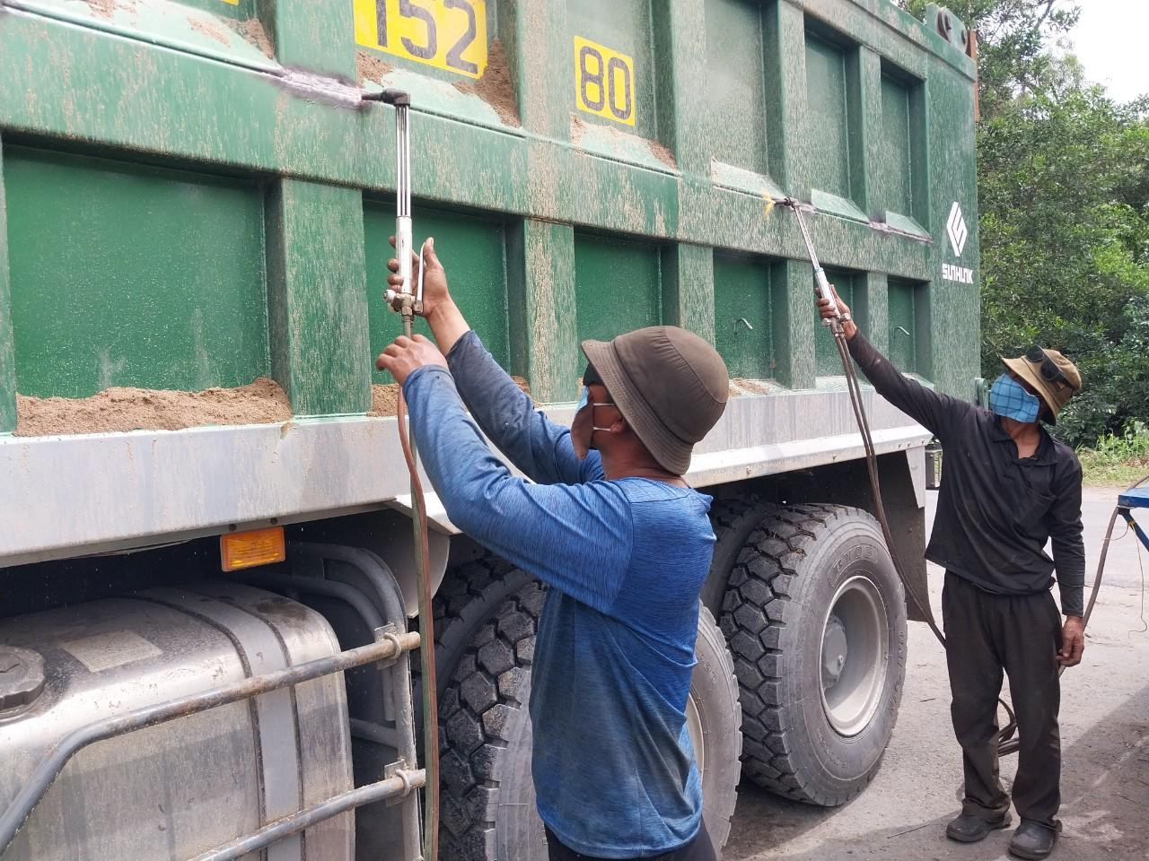 | Tài xế xe ben chứng kiến trực tiếp việc cắt phần thùng cơi nới |