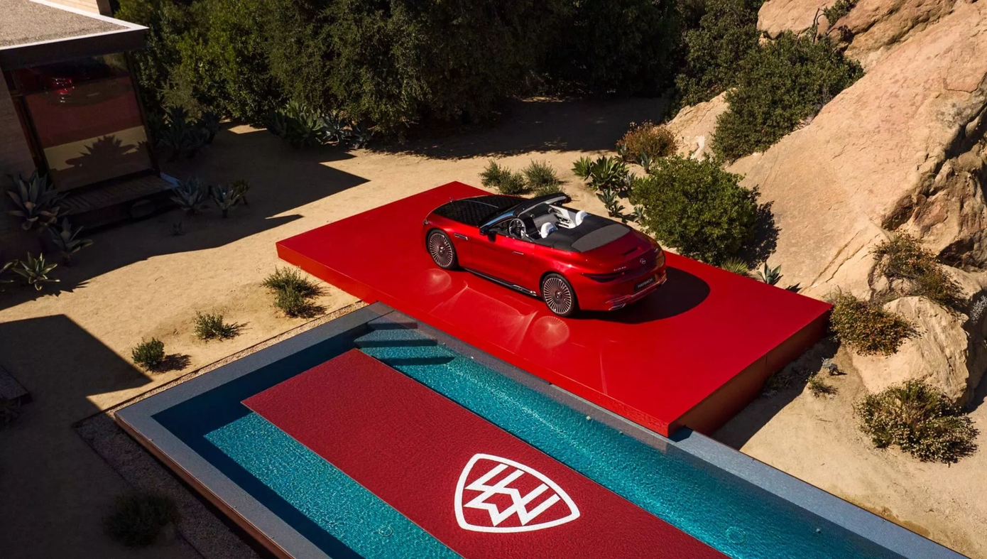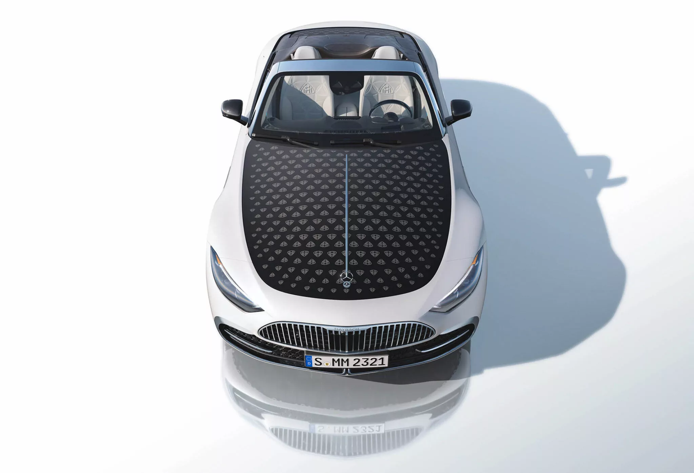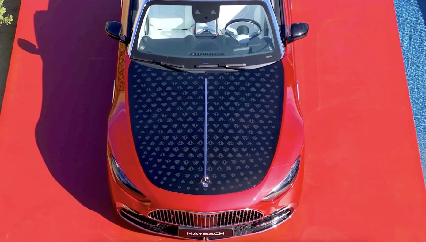 Đầu tiên là logo Maybach phủ đầy chiếc mui trần siêu sang, bao gồm cả những khu vực ít phổ biến như hốc gió trước và mui mềm. Đặc biệt, khách hàng còn có thể lựa chọn trang trí toàn bộ nắp ca-pô bằng họa tiết Maybach nếu muốn.