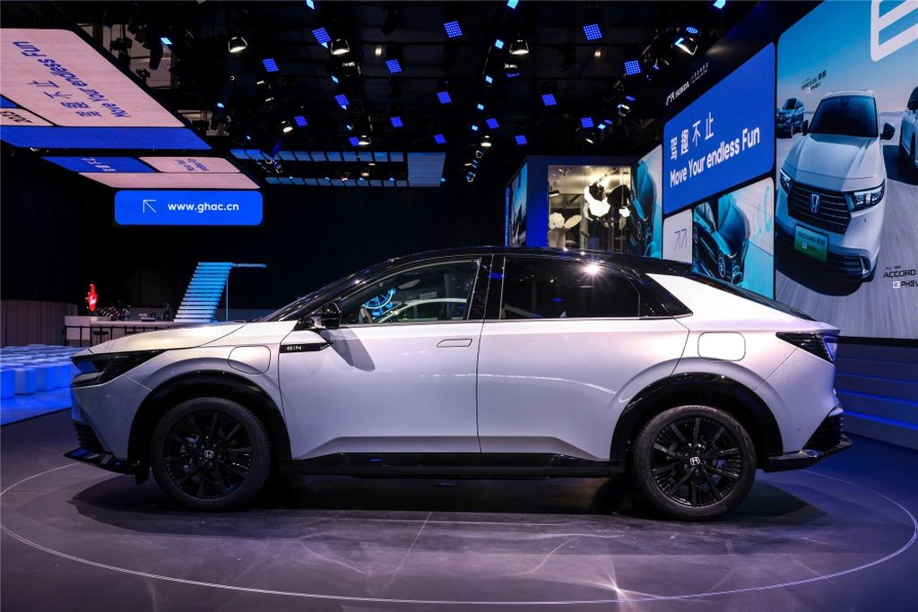Mẫu xe điện này được áp dụng ngôn ngữ thiết kế e:N Design kết hợp đặc điểm của dòng xe sedan và SUV. Trong đó, đầu xe được trang bị cụm đèn pha hình chữ C, logo Honda tích hợp đèn LED ẩn, có thêm hốc gió trung tâm rộng và cánh lướt gió sau màu đen bóng.