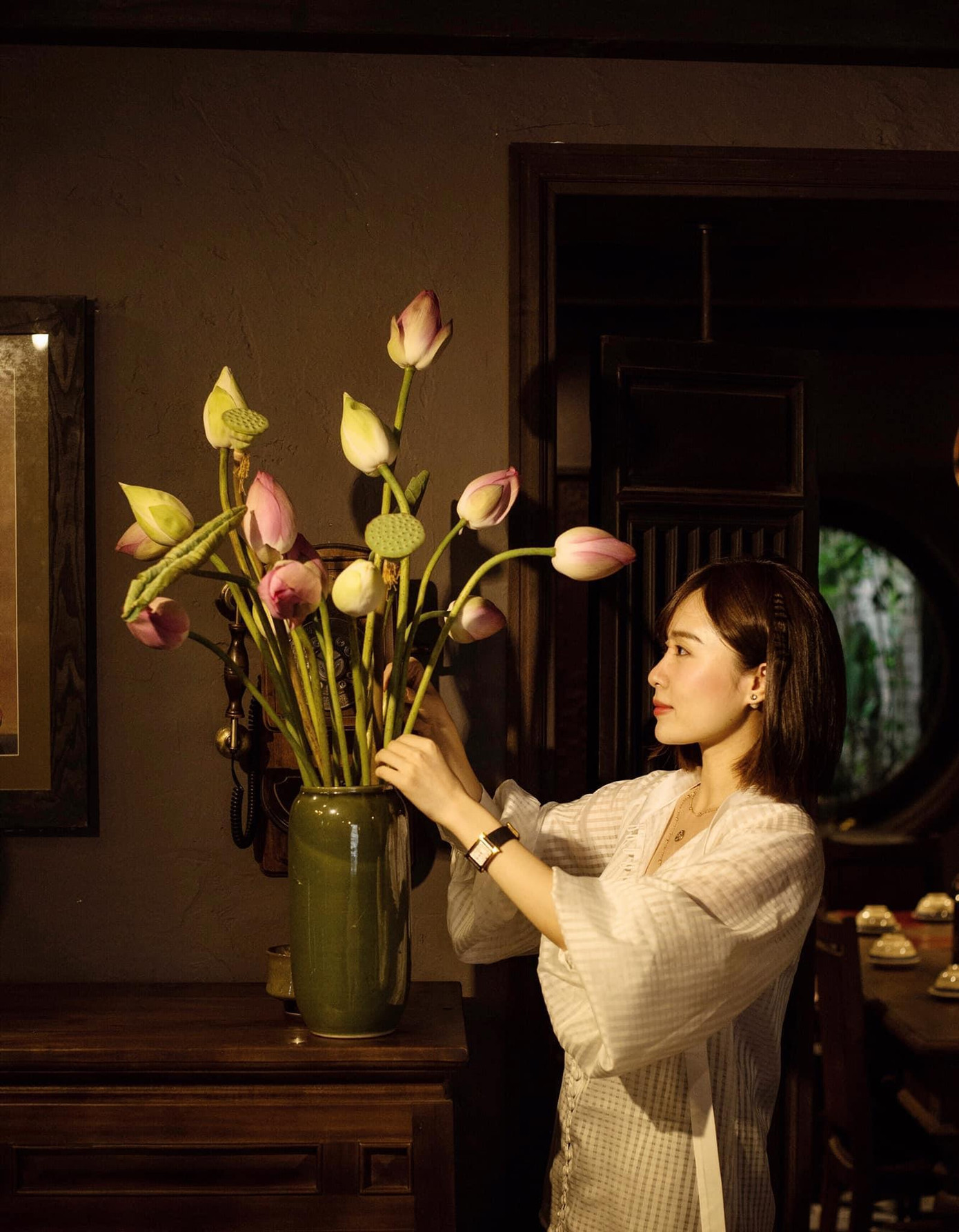 Phương Mai cho biết, cô rất yêu nghệ thuật. Tác phẩm của Phương Mai là những bình hoa mang vẻ đẹp riêng. Giảng viên trẻ đã đã thổi hồn vào từng bông hoa và gửi gắm tâm hồn nghệ thuật vào từng bình hoa cô cắm.