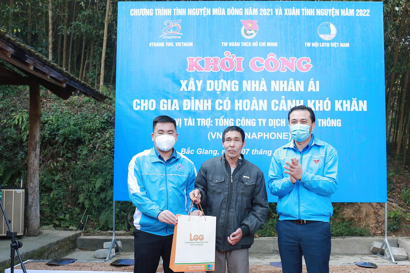 | Anh Nguyễn Ngọc Lương trao quà cho những người dân có hoàn cảnh khó khăn tại Lễ khởi động chương trình. |