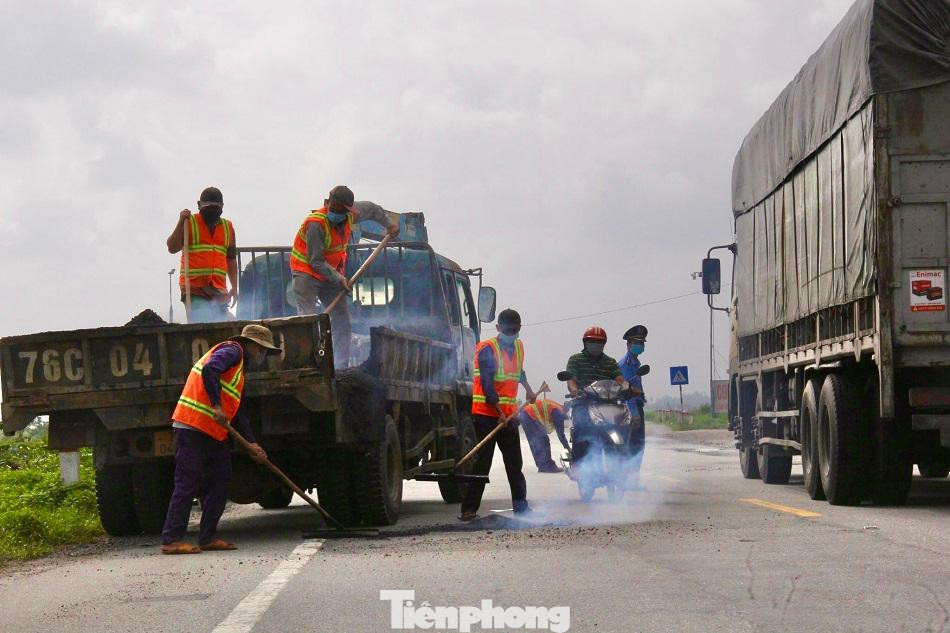 | Đơn vị thi công đang nỗ lực khắc phục vá các điểm hư hỏng để đảm bảo an toàn cho phương tiện lưu thông. |