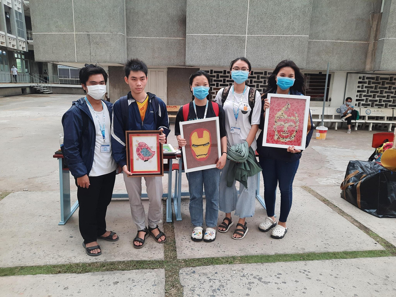 | Những bức tranh bằng nút áo của Thành được bạn bè rất yêu thích. |