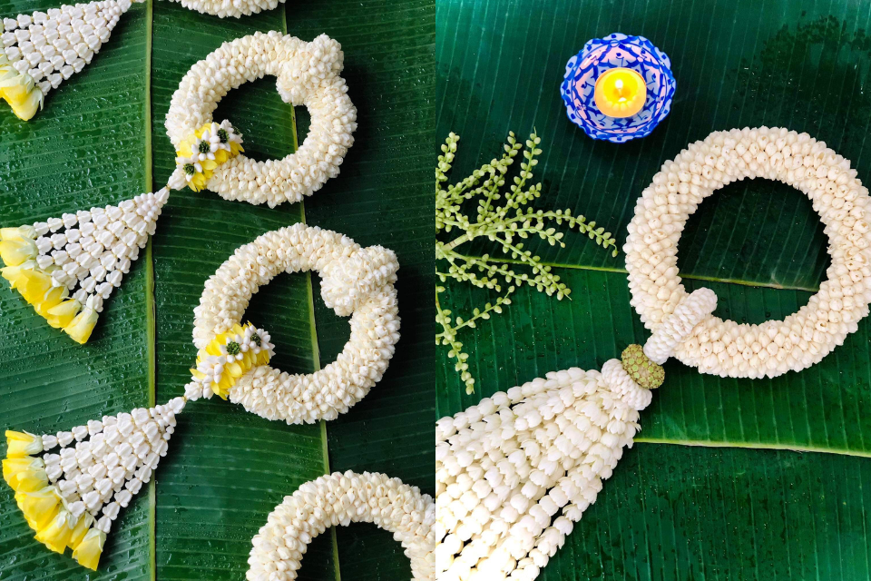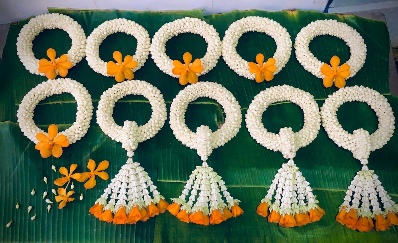 | Vòng hoa được đan kết từ hoa cúc vạn thọ. |