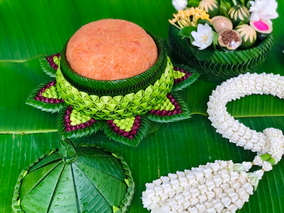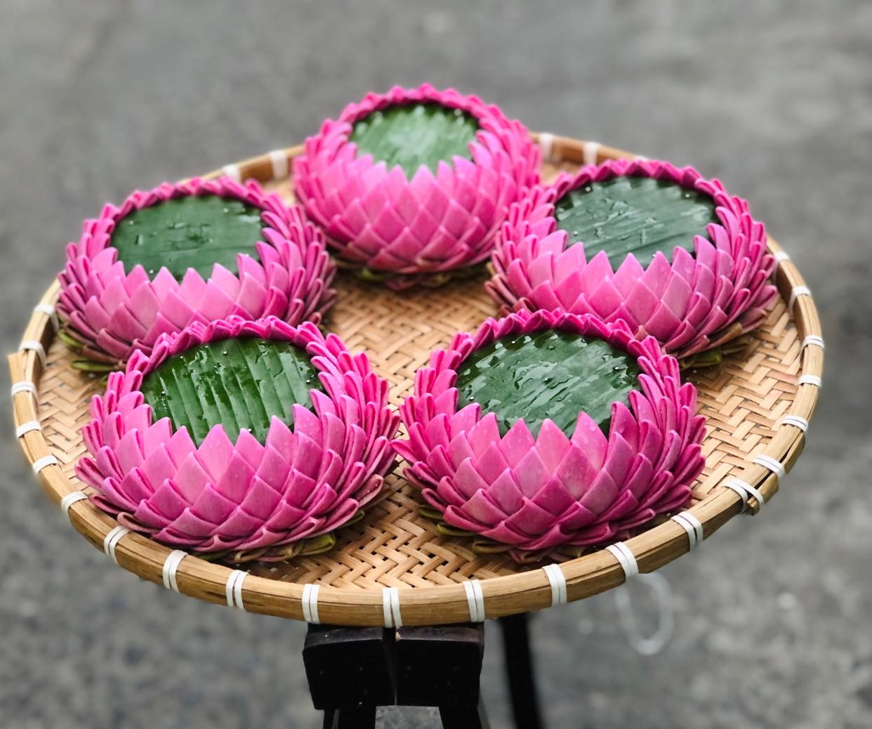 Ngoài kết vòng hoa nghệ thuật, Huy còn thực hiện đài lá chuối đựng vật phẩm dâng lễ thờ cúng. Với mỗi sản phẩm, Huy đều làm thủ công, trải qua nhiều giai đoạn: Chọn lá, lau lá, xếp lá, kết vào vật liệu bằng xốp… Giai đoạn tạo hình cánh hoa bằng lá chuối chiếm phần lớn thời gian tạo hình sản phẩm này. Với Huy, sáng tạo đòi hỏi sự kỳ công, chăm chút trong từng chi tiết nhỏ để khi sản phẩm đến tay khách hàng là sự chỉn chu, hài lòng.