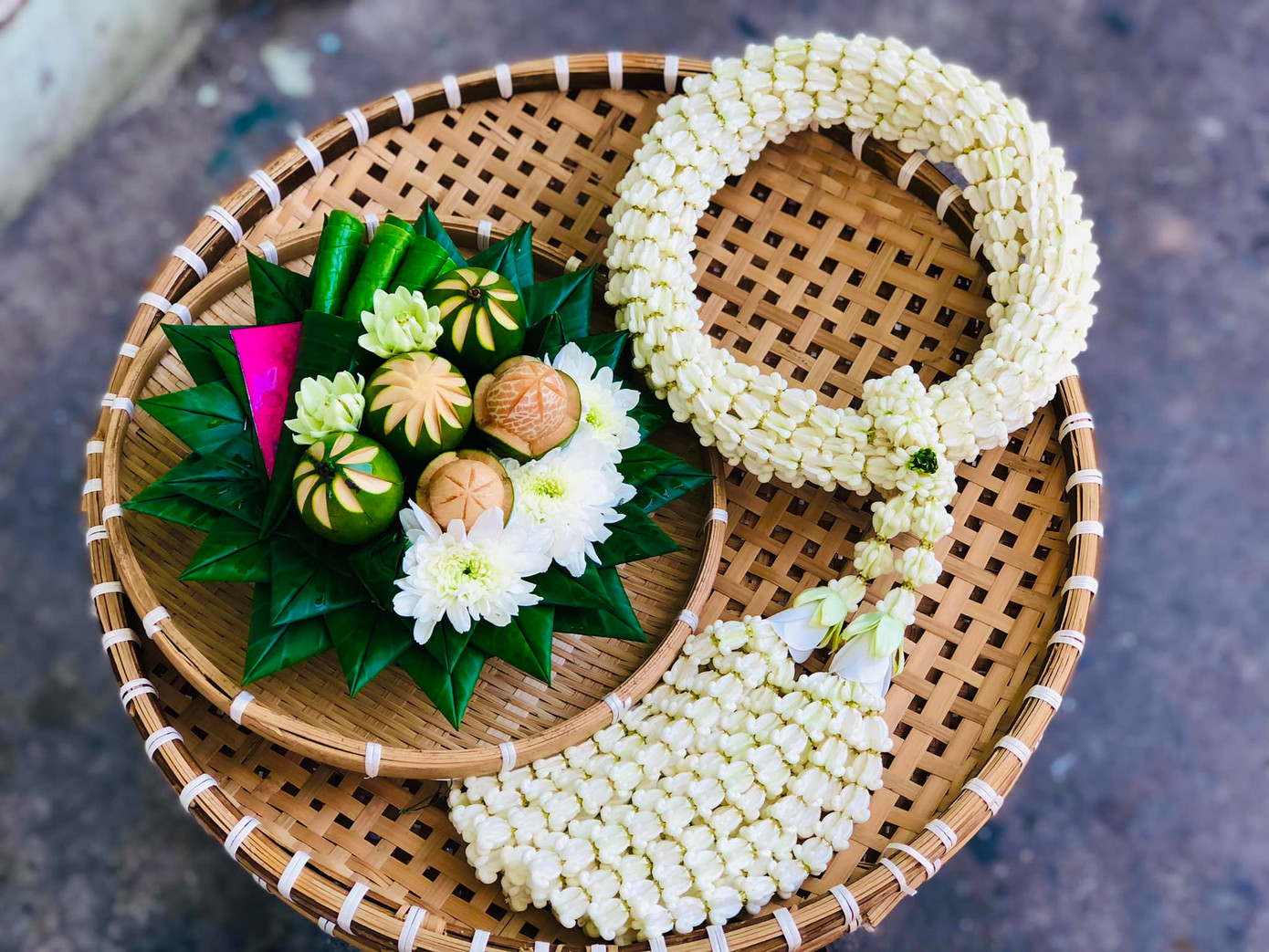 Thông thường, Thanh Huy sử dụng lá chuối, hoa lài, hoa lan, hoa sen, kèm một số loài hoa phụ như: Bạch thiên hương, hoa trang… kết hợp chúng thành các vòng hoa nghệ thuật sinh động. Ngoài ra, anh cũng tự trồng giống hoa bồng bồng trắng để kết hoa nghệ thuật, tăng tính độc lạ, cung cấp sản phẩm đẹp đến tay khách hàng.