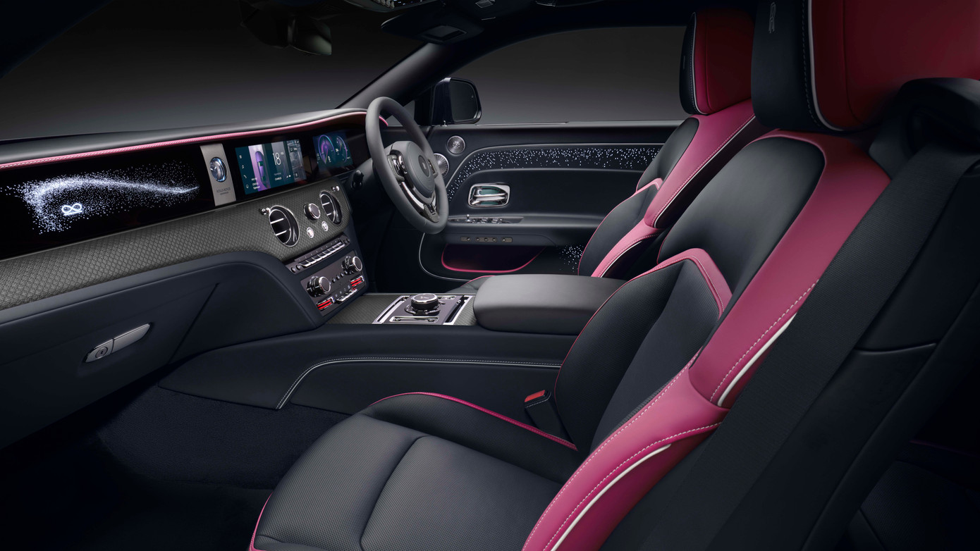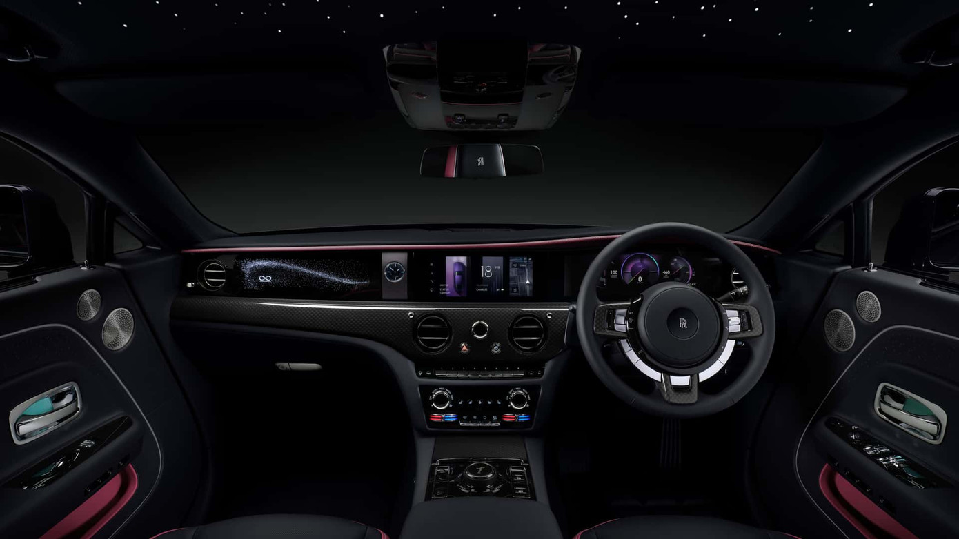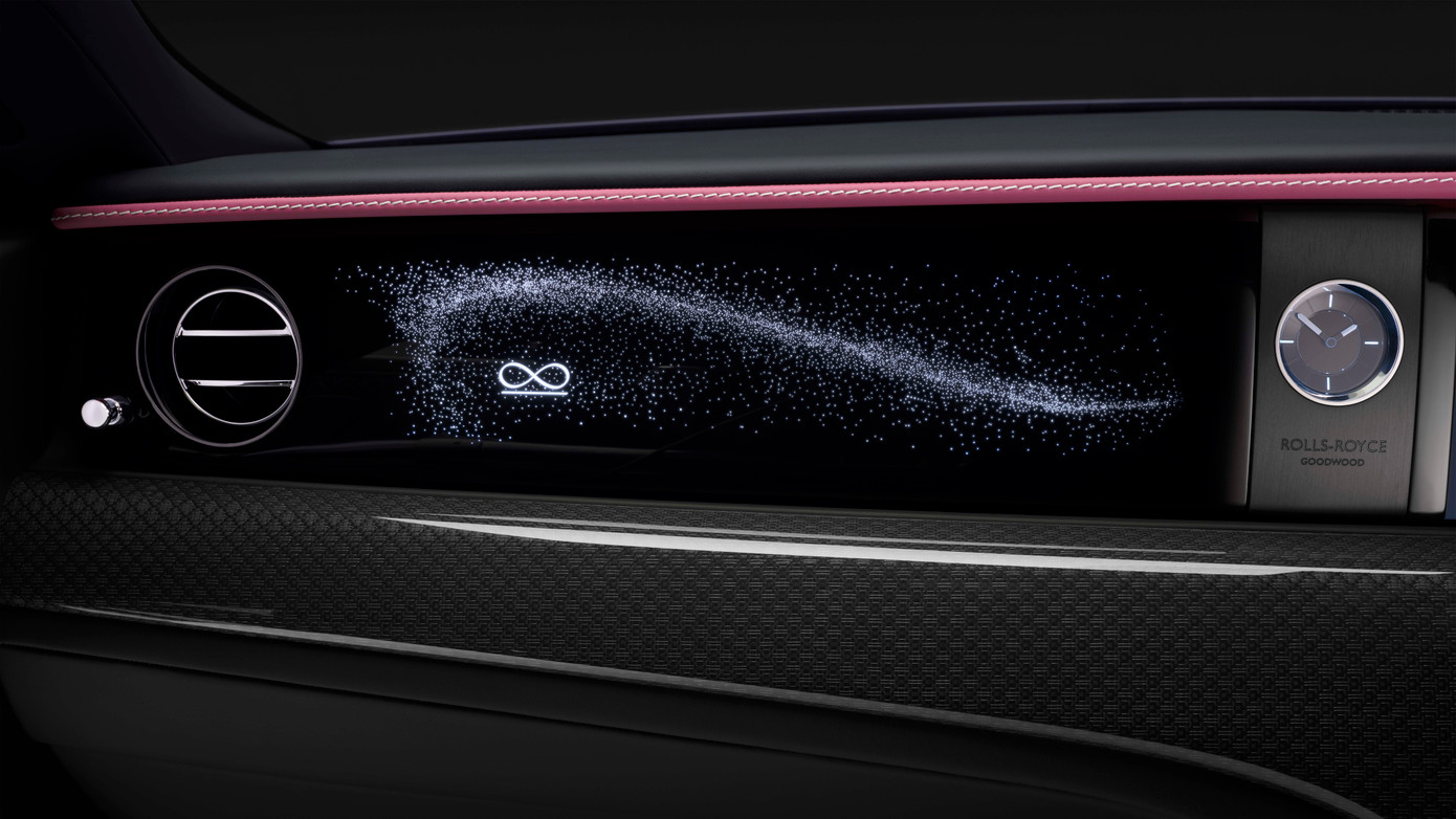 Rolls-Royce cho biết mỗi chi tiết nội thất đều được phủ sáu lớp sơn mài và đánh bóng thủ công tỉ mỉ. Đặc biệt, bảng đồng hồ kỹ thuật số cho phép cá nhân hóa với năm chủ đề màu sắc.