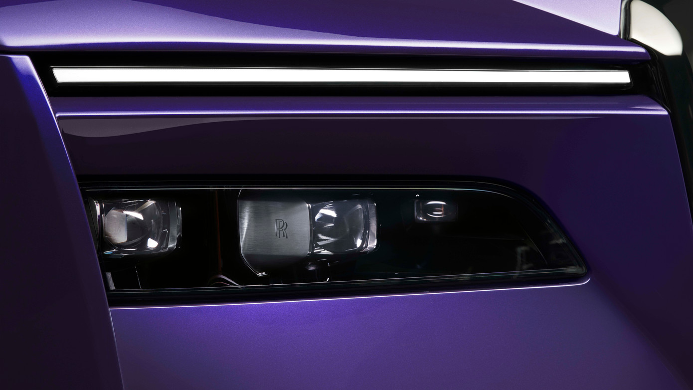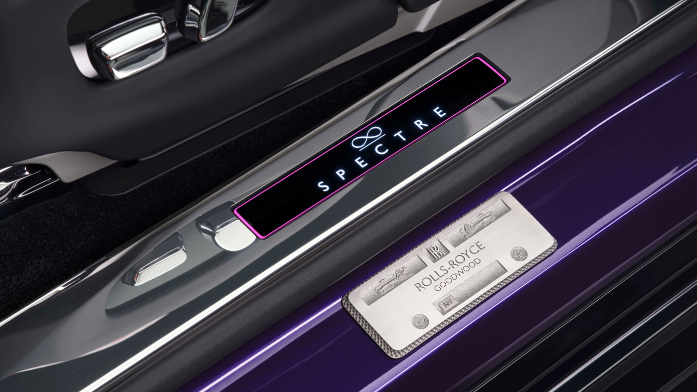Khác biệt không chỉ nằm ở hiệu suất, Spectre Black Badge còn còn sở hữu nhiều tùy chọn trang bị độc quyền. Bao gồm sơn ngoại thất tím Vapor Violet hoàn toàn mới, kết hợp với mui xe màu đen mờ, đi cùng lưới tản nhiệt phát sáng với tấm nền tím bên trong.