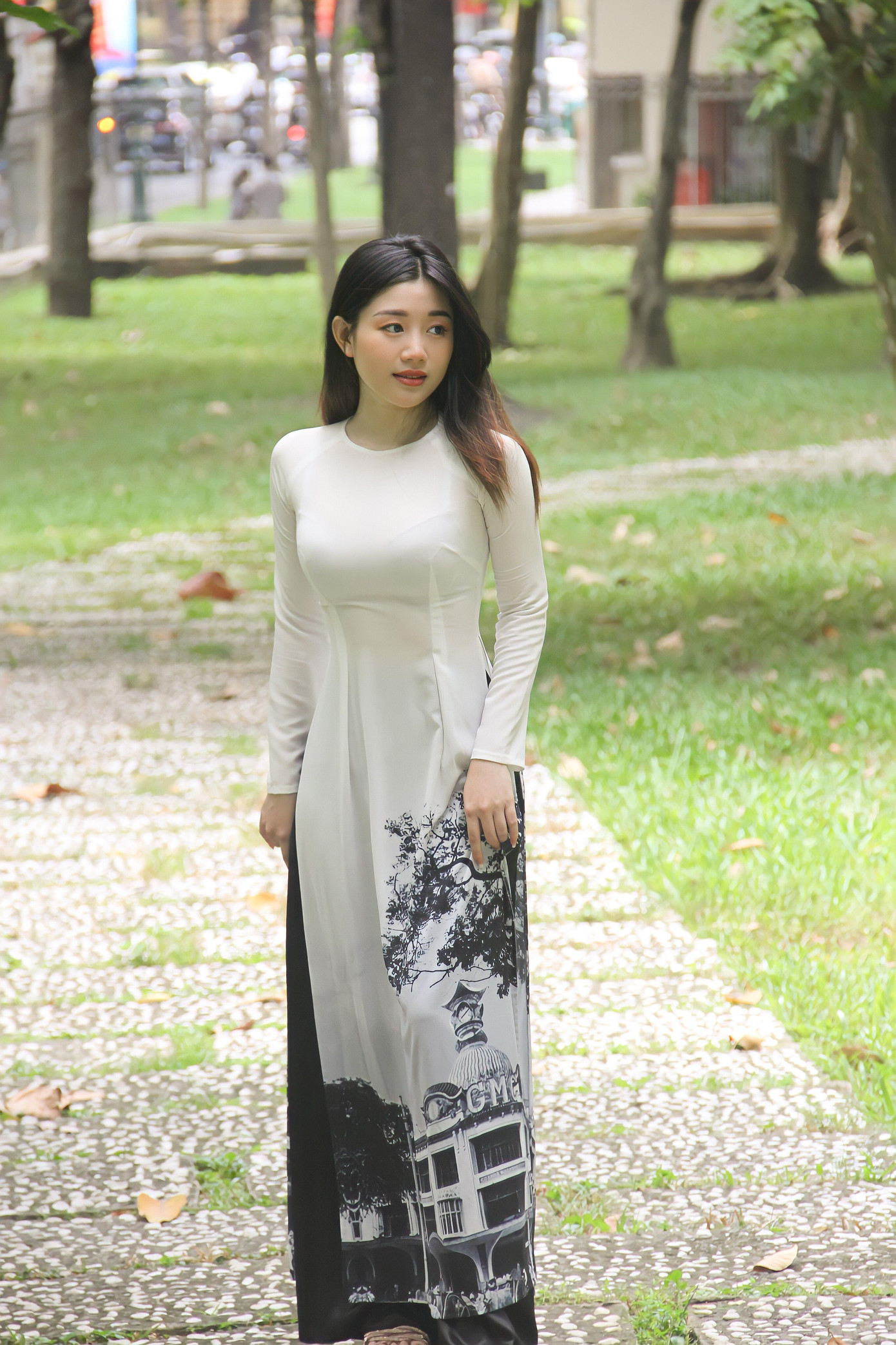 “Trải qua nhiều thời kì, tà áo dài đã có sự biến đổi lớn, tuy vậy vẫn đảm bảo được tính khuôn mẫu, truyền thống. Cũng giống như những người phụ nữ Việt Nam khác, khi khoác lên mình trang phục này, mình cảm thấy bản thân toát lên vẻ thanh cao, đầy tự hào”, Ngọc Vân chia sẻ.