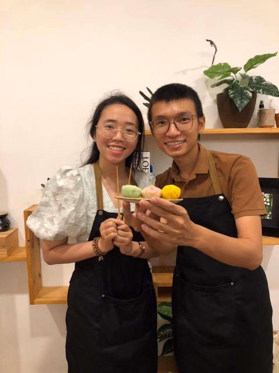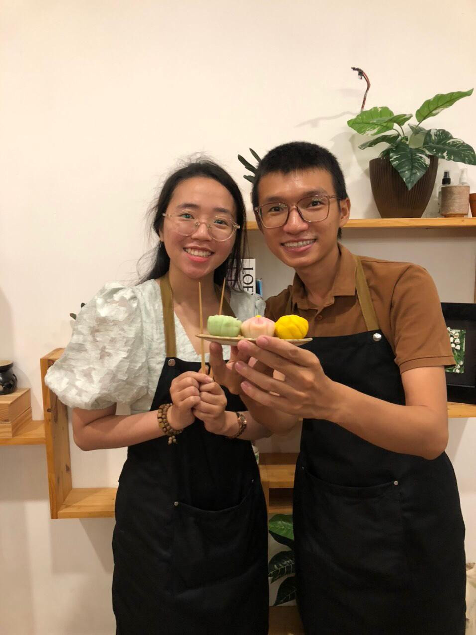| Khải đang hướng dẫn các bạn trẻ trong một workshop làm bánh. |