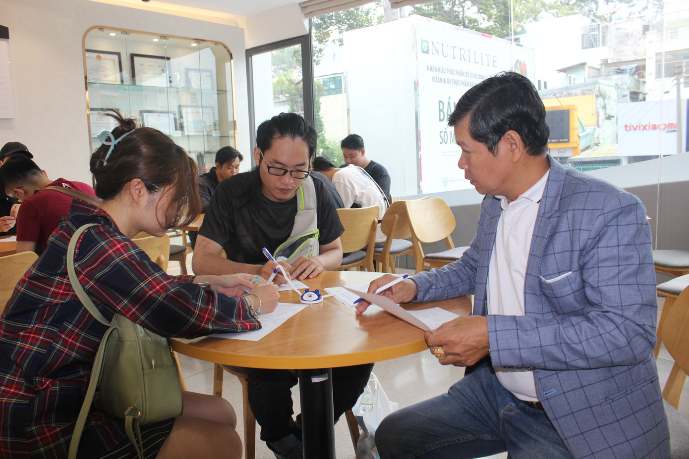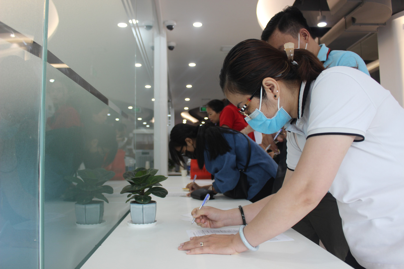 | Mọi người cùng điền phiếu đăng ký trước khi khám sàng lọc. |