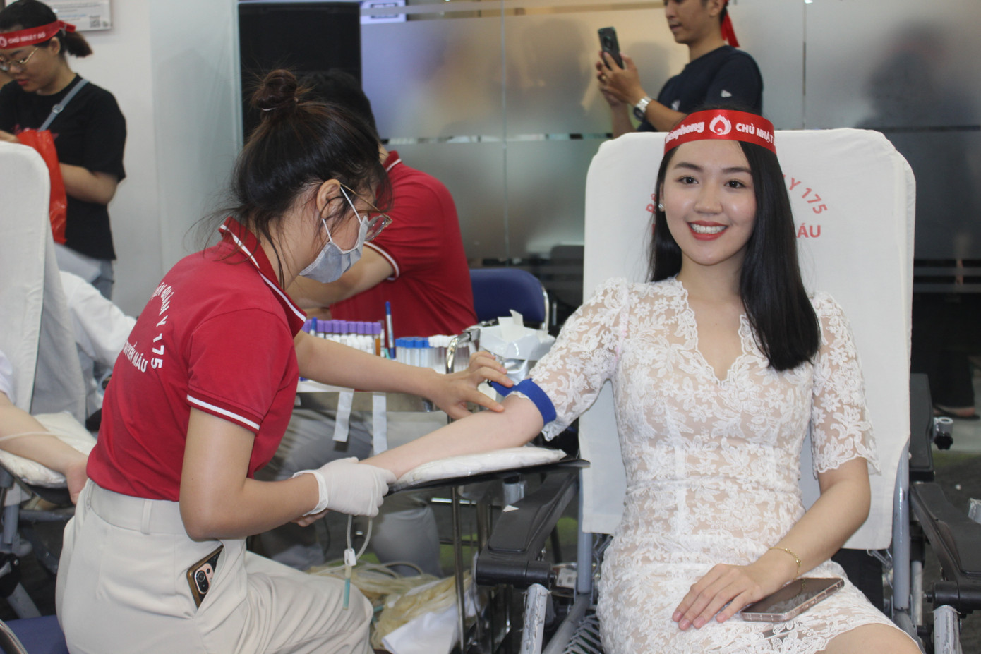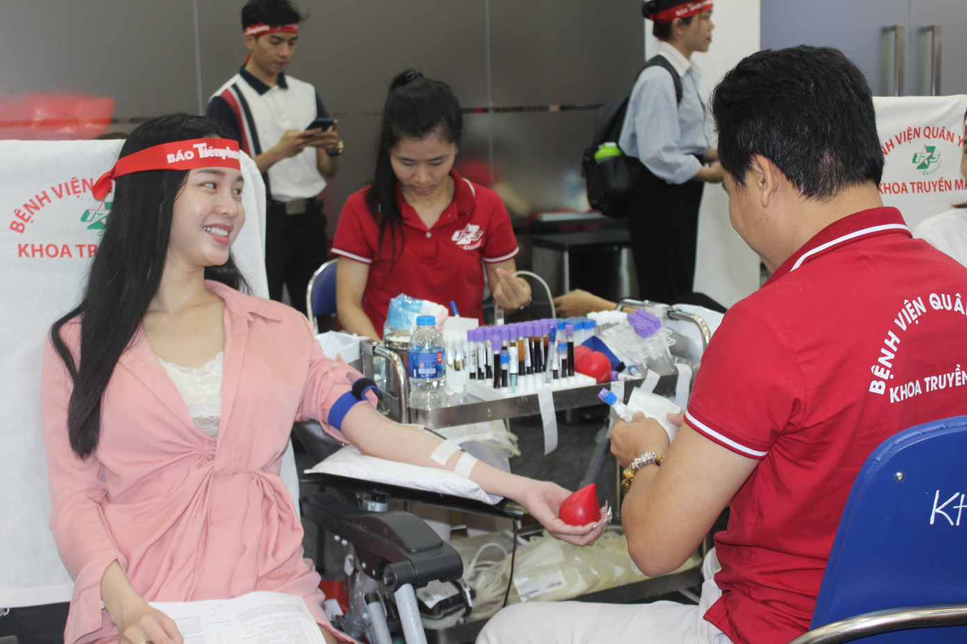 | Cả 3 người đẹp cùng tham gia hiến máu tại chương trình. |