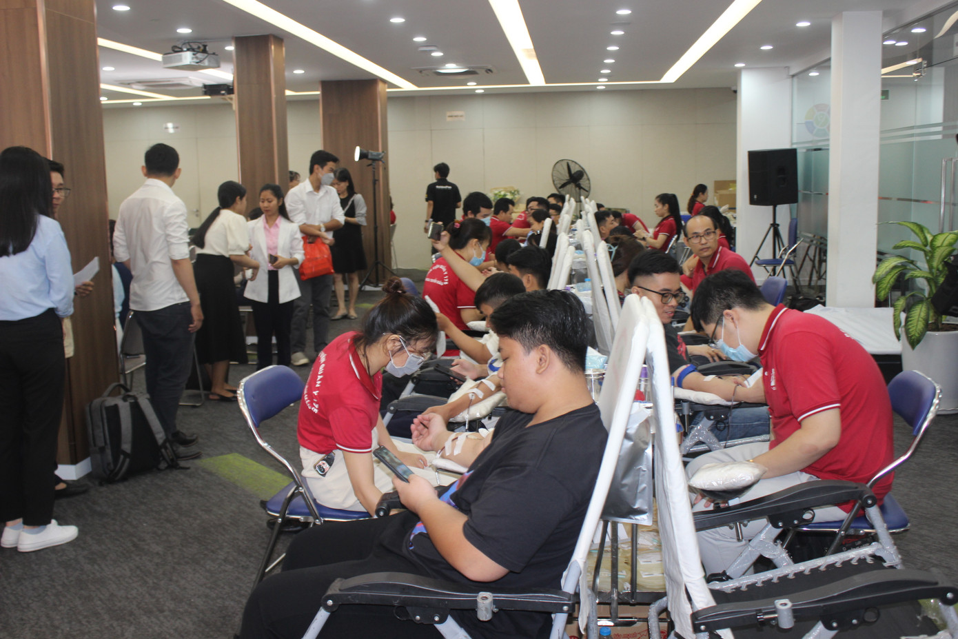 | Đông đảo nhân viên, đại lý, đối tác của Công ty Amway Việt Nam tham gia hiến máu. |