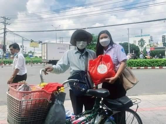 | Chúc Ly (áo đỏ) tích cực trong các hoạt động thiện nguyện. |
