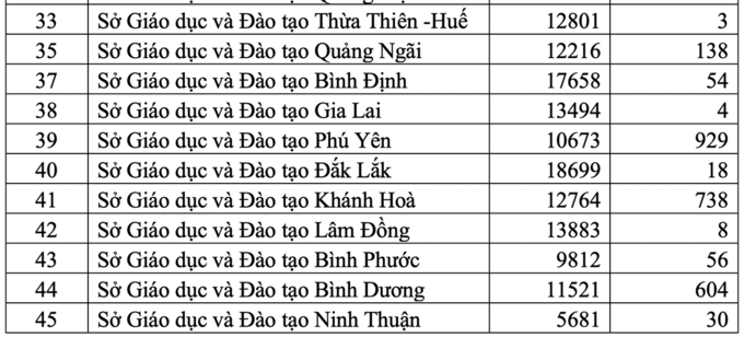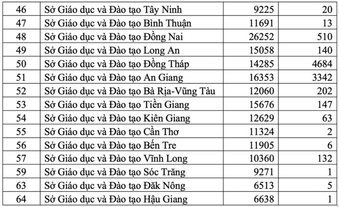 Một số tỉnh, thành khác có đông thí sinh không thể dự thi là Khánh Hòa (738), Bình Dương (604), Đồng Nai (510). Ở phía Bắc, Hà Nội có đông thí sinh không thể dự thi nhất với 193 em, tiếp đến là Hưng Yên (117), Bắc Giang (57).