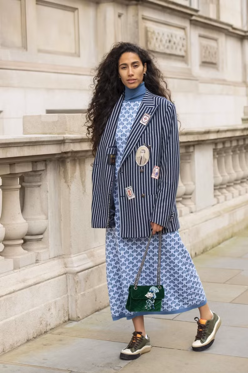 Khi một chiếc đầm khiến bạn trông quá mềm mại yểu điệu, hãy thêm một chiếc áo blazer đứng form, chất liệu vải cứng để trông mạnh mẽ hơn. Để giảm thiểu tối đa sự thướt tha nữ tính của những chiếc đầm lụa hoặc voan, không gì hiệu quả hơn một đôi giày sneaker năng động. Công thức phối này giúp bạn có một bộ trang phục cân bằng, vừa điệu đà vừa cá tính, hợp với hầu hết mọi môi trường.