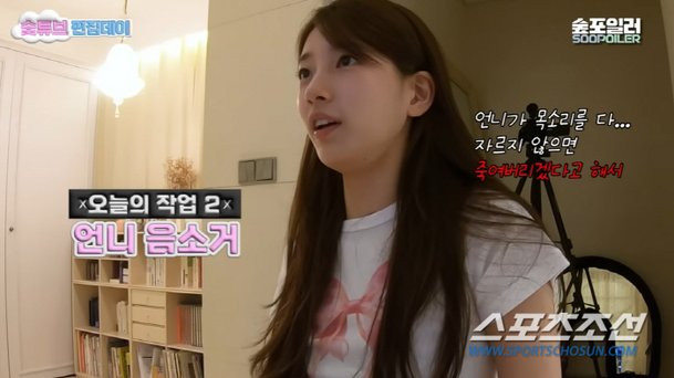 Sau bữa ăn, Suzy ngồi trước màn hình và bắt đầu chỉnh sửa video của mình. Nữ diễn viên ghi chú mọi thứ cần thiết cho việc chỉnh sửa và dán chúng lên bàn, sau đó bắt đầu cắt video và thêm phụ đề. Ngoài ra, 'cô nàng' cũng không quên loại bỏ giọng nói của chị gái theo yêu cầu.