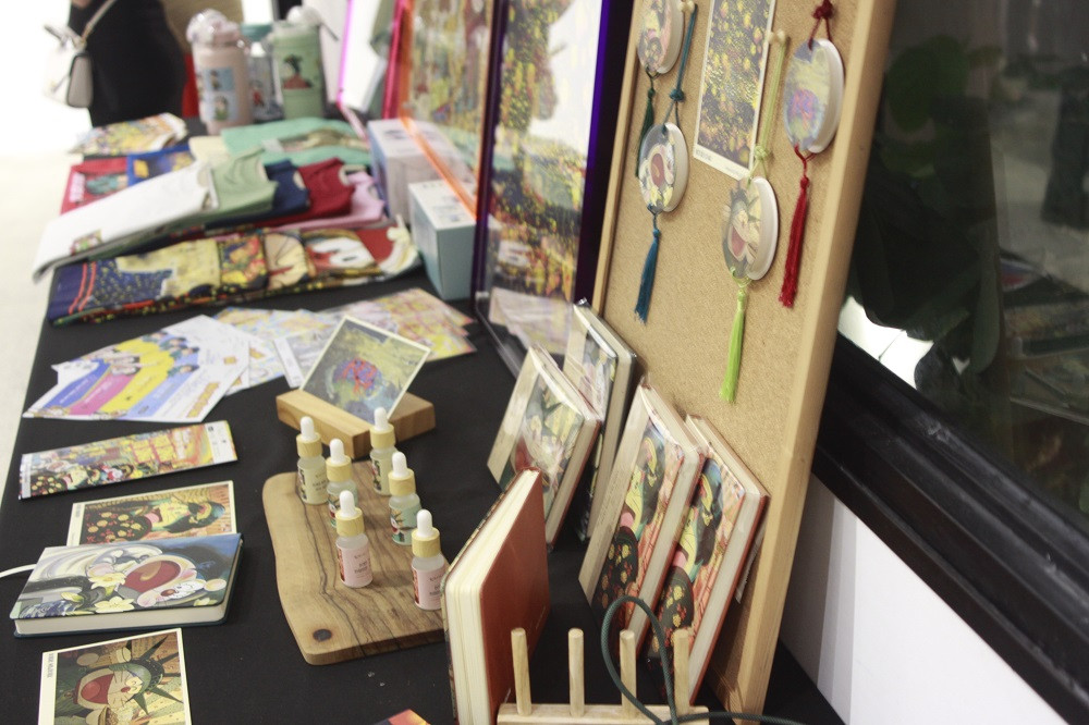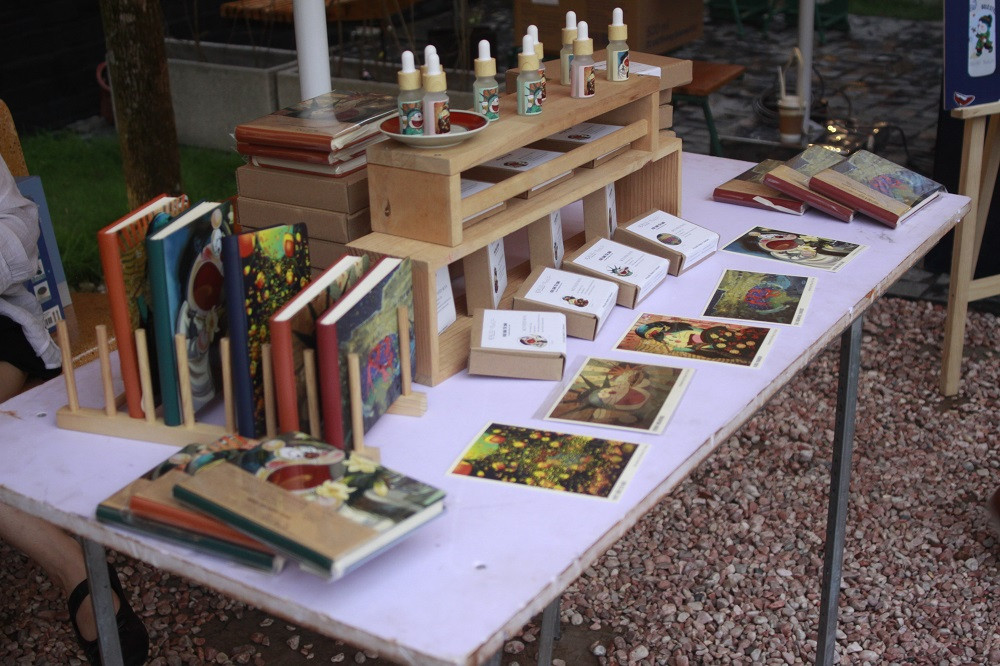 Ghé qua khu vực ngoài trời của triển lãm, bạn còn có thể “rinh” nghệ thuật về nhà với bộ sản phẩm phiên bản giới hạn. Từ áo phông, dây đeo, bình giữ nhiệt đến khăn lụa, sổ vẽ, postcard hay cả tinh dầu thơm… tất cả đều được in hình những bức tranh độc quyền - đủ để bạn tậu ngay cho mùa Hè này.