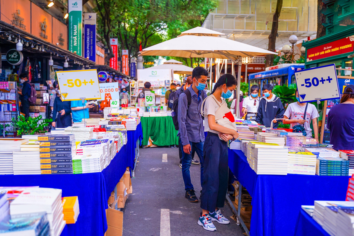 Cặp đôi trẻ Nguyễn Trung Kiên và Nguyễn Thị Minh Thư (ngụ TP. Thủ Đức) cho biết, hôm nay ra đây, hai bạn đã chọn và mua cho mình những loại sách hay với giá rẻ. "Thông thường, tụi mình rất hay ra đây để tham khảo các loại sách và tìm hiểu thêm nhiều điều thú vị sau mỗi giờ học tập trên lớp", Minh Thư thổ lộ.