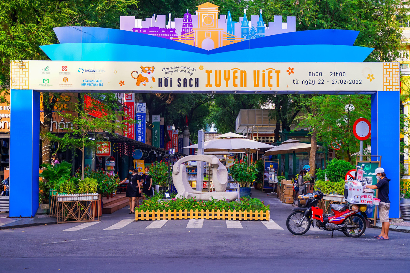 Tại hai cổng ra vào của đường sách, nhiều bạn trẻ cho rằng Ban Tổ chức chương trình ngày hội đã có sự chuẩn bị rất công phu, khi trang trí khu vực cổng chào mang hình ảnh các danh lam thắng cảnh của thành phố với màu sắc sặc sỡ.