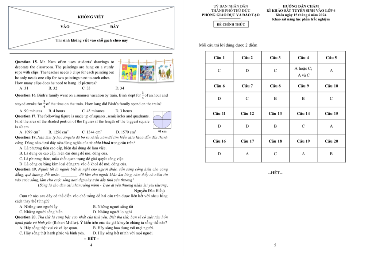 Cùng đó, Phòng Giáo dục và Đào tạo cũng công bố đáp án các môn thi.