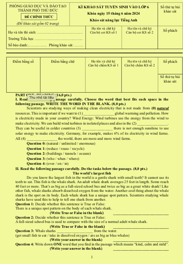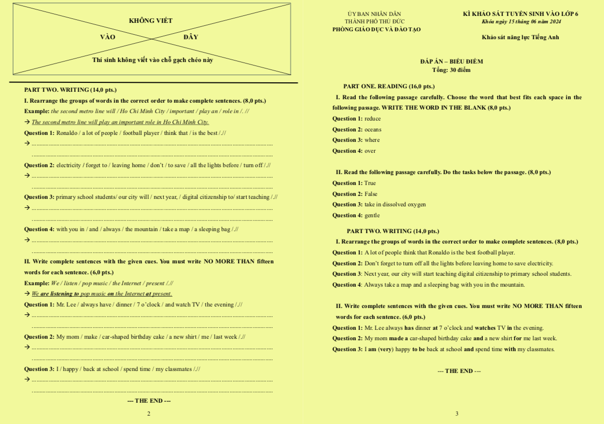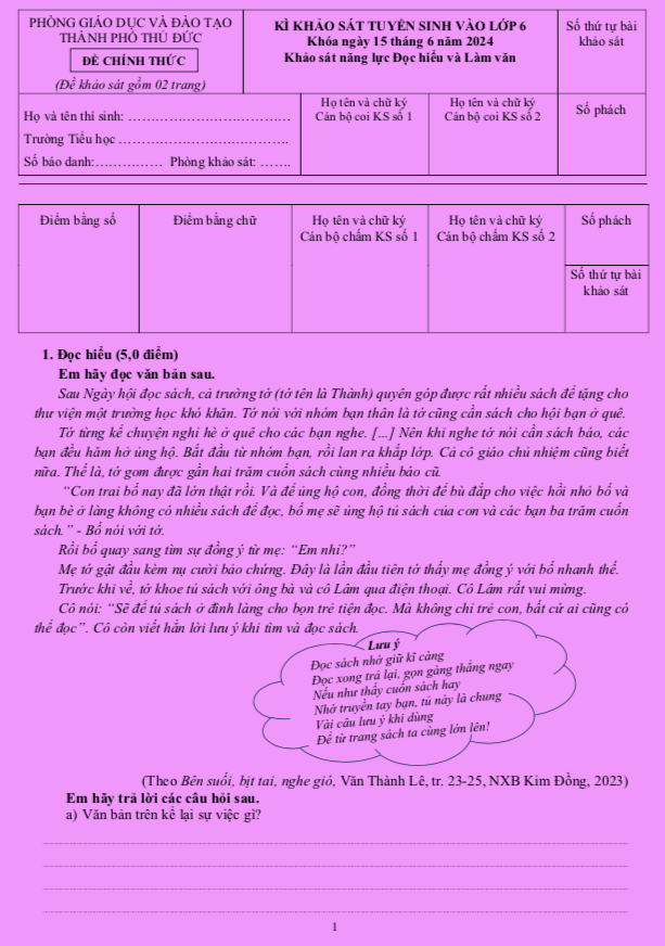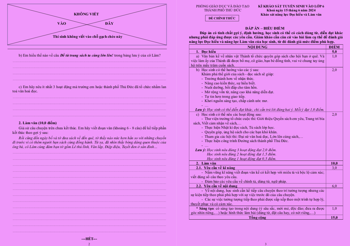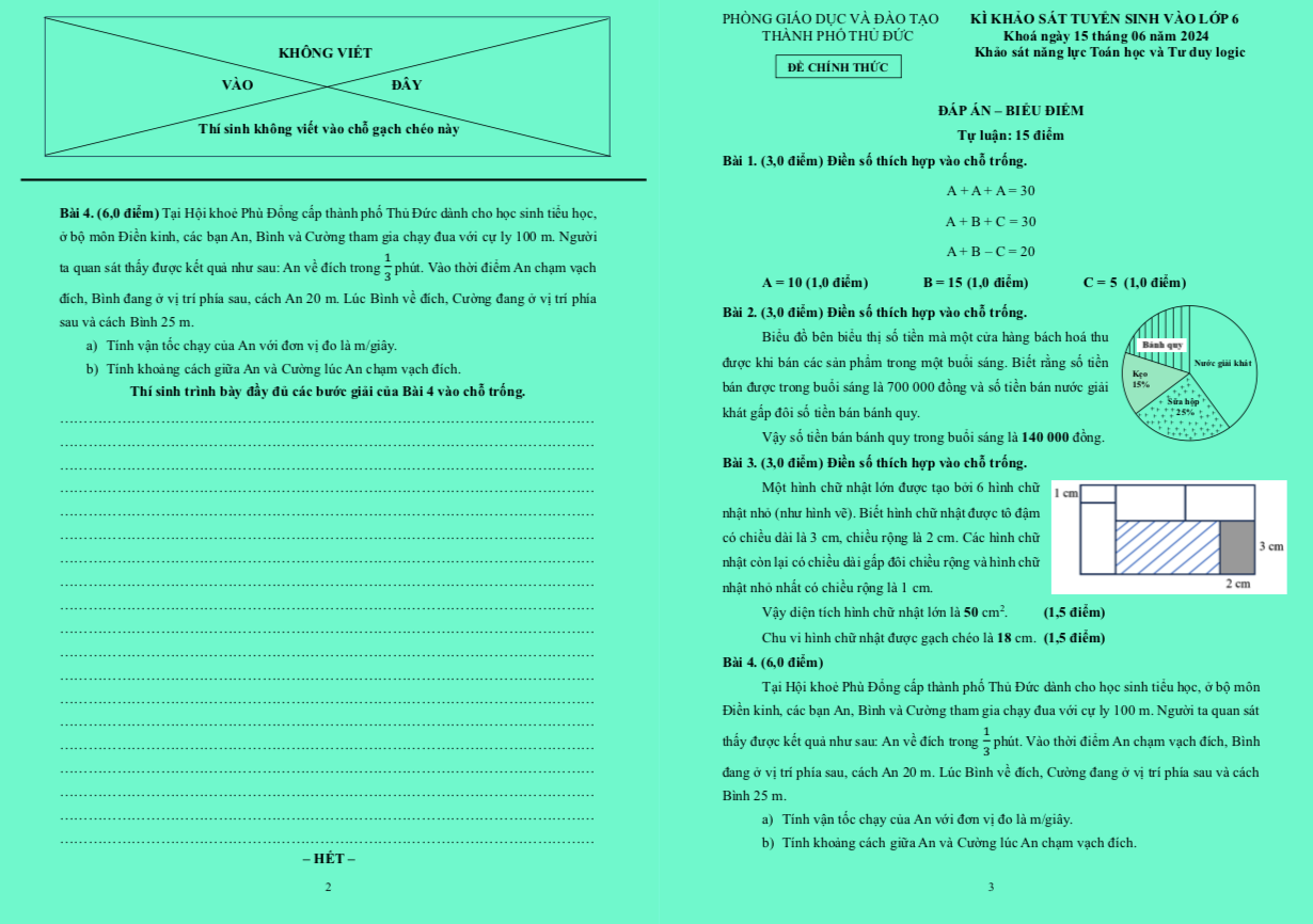 Sáng 22/6, Phòng GD&ĐT TP Thủ Đức công bố điểm thi và đáp án khảo sát vào lớp 6 tại 3 Trường THCS Bình Thọ, THCS Hoa Lư và THCS Trần Quốc Toản 1.