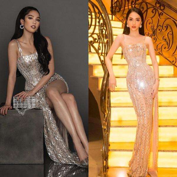 Thật khó nói Ngọc Trinh hay Hương Giang, cô gái nào tỏa sáng hơn trong bộ đầm lấp lánh này. Chắc chắn chỉ có những người đẹp với vóc dáng đồng hồ cát mới tự tin khoác lên người thiết kế này mà thôi.