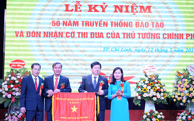 Trường ĐH Sao Đỏ nhận Cờ thi đua của Thủ tướng Chính phủ nhân dịp kỷ niệm 50 năm truyền thống đào tạo.
